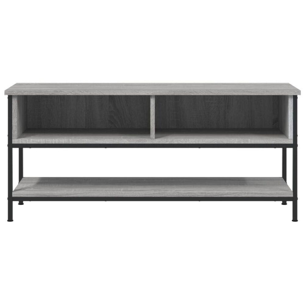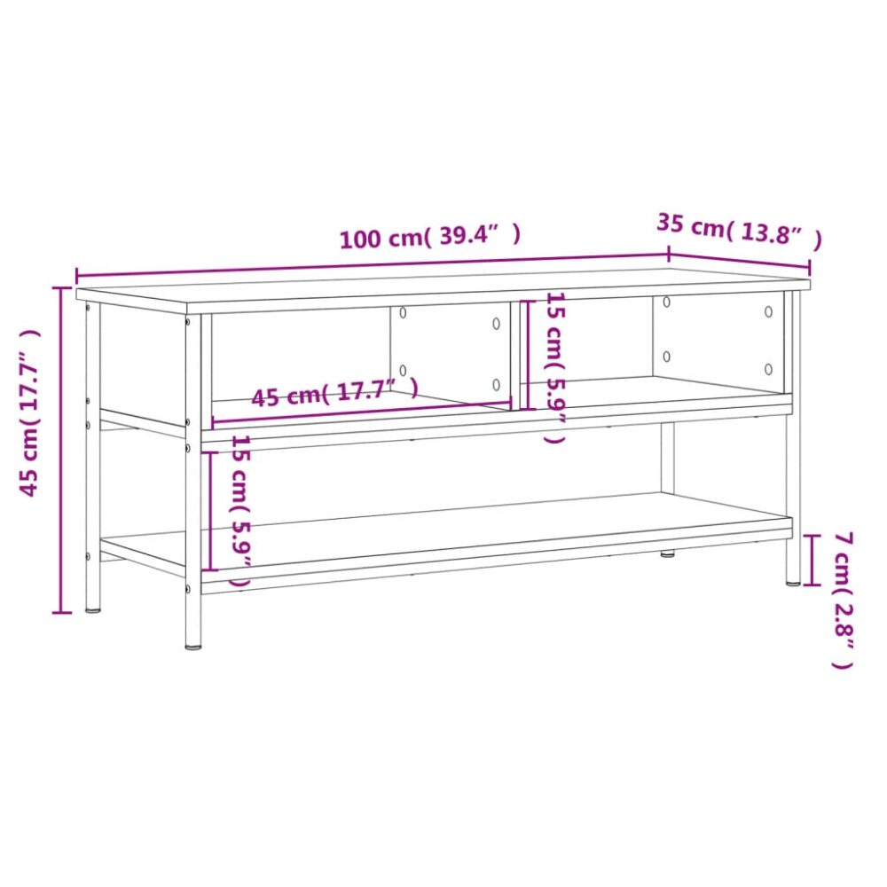 Este móvel de TV clássico é um complemento prático e atraente para o seu interior. Material durável: os derivados de madeira possuem uma qualidade excecional e oferecem uma superfície suave bem como força, estabilidade e resistência à humidade.Amplo espaço de arrumação: o suporte de TV apresenta 2 compartimentos abertos e 1 prateleira para manter os leitores de DVD, consolas de jogos, dispositivos de transmissão e suportes multimédia ao seu alcance e bem organizados.Pés de ferro: os pés de ferro dão um toque industrial ao seu interior, enquanto asseguram estabilidade.Função de exposição: o tampo robusto da unidade de TV é ideal para expor artigos decorativos, tais como molduras e plantas.