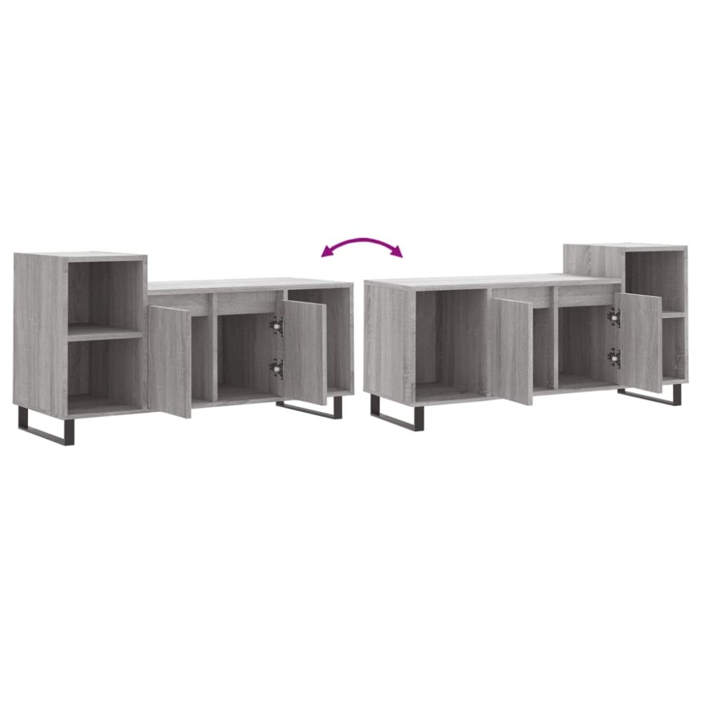 Com um design elegante e prático, este móvel de TV está destinado a tornar-se definitivamente um ponto focal na sua divisão. Material robusto: os móveis feitos em derivados de madeira possuem uma qualidade excecional e oferecem uma superfície suave bem como força, estabilidade e resistência à humidade.Amplo espaço de arrumação: equipado com 5 compartimentos, o móvel de TV oferece um amplo espaço de arrumação para manter todas as suas revistas, DVDs e quaisquer outros artigos bem organizados.Tampo robusto: o tampo da unidade de TV fornece uma superfície segura para expor objetos decorativos, molduras ou vasos com plantas.Portas práticas: mantenha os seus artigos essenciais livres de pó, escondendo-os atrás das portas do móvel multimédia. Atenção:Para evitar que o produto se vire, deve utilizar o dispositivo de fixação na parede fornecido.