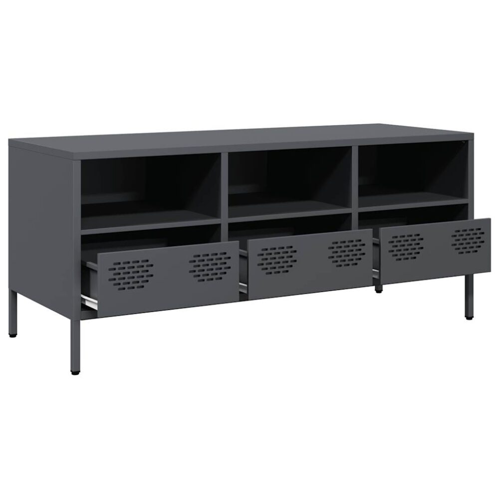 Este móvel de TV resistente com um estilo industrial é um complemento intemporal para o seu quarto ou sala de estar. Material estável: a estrutura do suporte de TV é feita de aço laminado a frio. O aço laminado a frio é um tipo de aço de baixo carbono produzido pelo método “de laminação a frio” e processado a temperaturas ambientes quase normais. O aço laminado a frio tem uma superfície mais lisa, maior resistência e maior precisão.Espaço de arrumação amplo: o móvel com 3 compartimentos e 3 gavetas oferece um amplo espaço de arrumação para manter vários artigos essenciais do dia-a-dia bem organizados e fáceis de alcançar.Pés de enroscar ajustáveis: este aparador de TV está equipado com quatro pés de enroscar ajustáveis para compensar pisos irregulares, garantindo estabilidade e equilíbrio.Fácil de limpar: o móvel de metal é fácil de limpar com um pano húmido e requer menos manutenção.