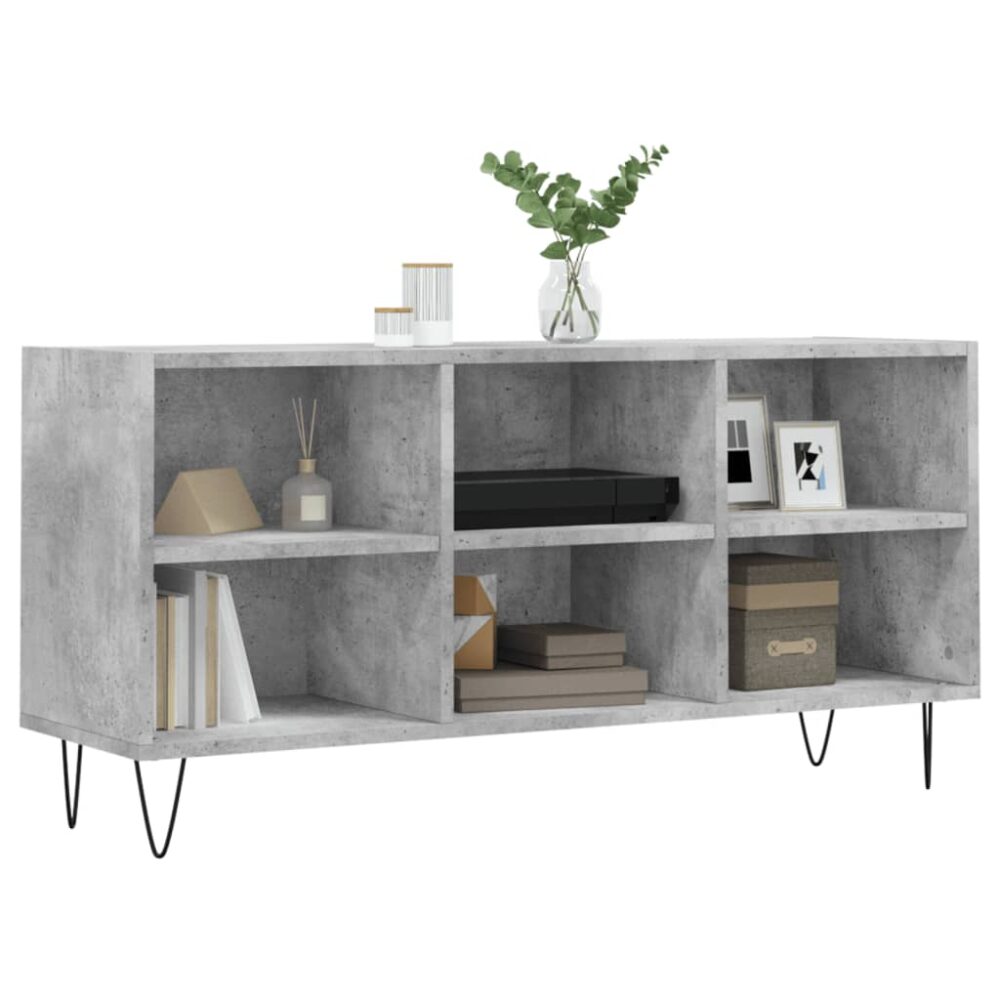 Este armário de televisão, com um amplo espaço de arrumação, é um complemento prático e atraente para a sua sala de estar ou quarto. Material robusto: a madeira processada é de qualidade excecional e possui uma superfície suave, apresentando ainda força, estabilidade e resistência à humidade. Feito a partir de derivados de madeira, o móvel de TV é fácil de limpar com um pano húmido.Amplo espaço de arrumação: este móvel de TV apresenta 6 compartimentos, oferecendo um amplo espaço de arrumação para manter as suas revistas, livros, DVDs e dispositivos de multimédia bem organizados e ao alcance.Tampo estável: o tampo estável do armário de apoio para televisão é perfeito para colocar livros, copos e outros artigos decorativos.Pernas de ferro: as pernas de ferro deste suporte de TV garantem robustez e estabilidade. Atenção:Para evitar que o produto se vire, deve utilizar o dispositivo de fixação na parede fornecido.