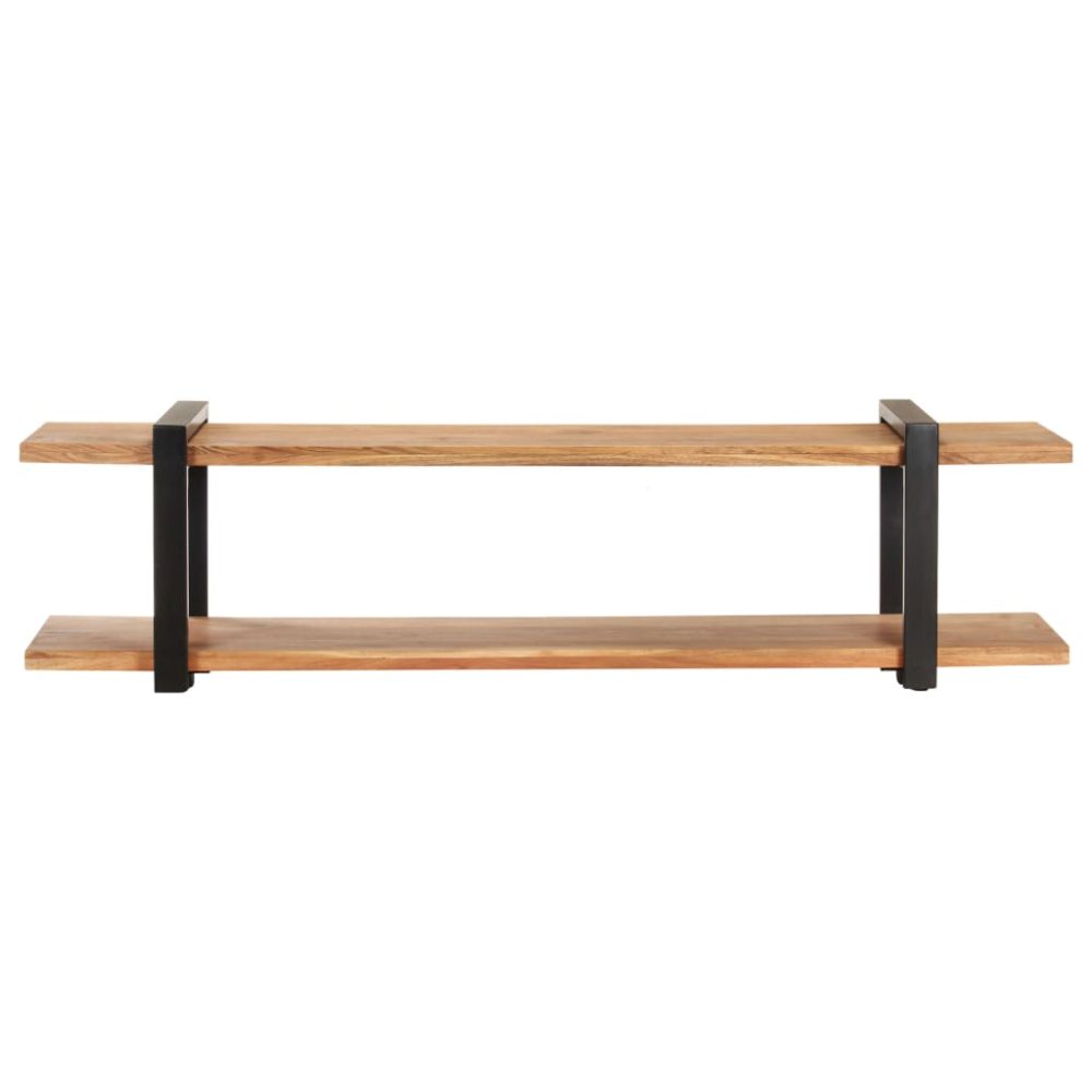 - Material: madeira de acácia maciça com acabamento natural, ferro revestido a pó