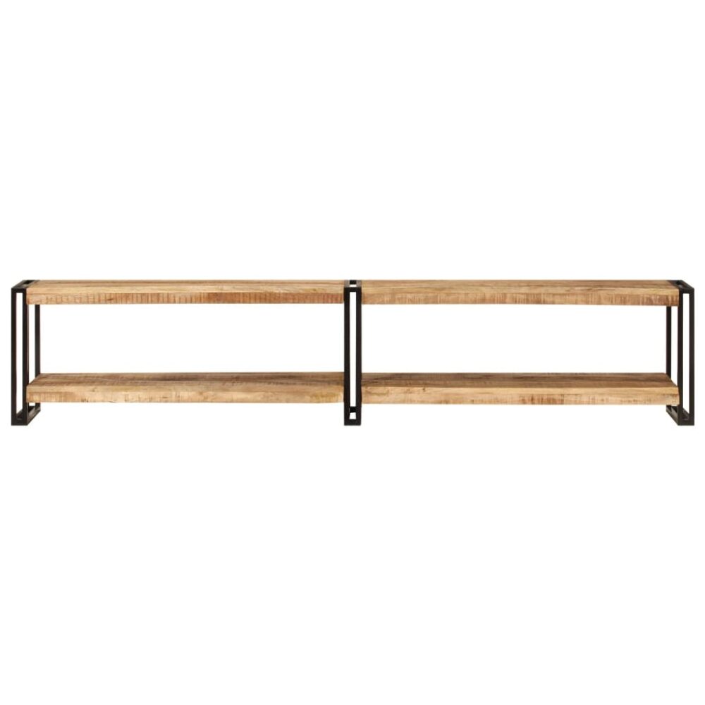 Este moderno móvel de TV em madeira apresenta um design elegante e moderno, tendo sido concebido para ser um complemento atraente, bem como prático, para a decoração da sua divisão. Madeira de mangueira maciça: a madeira de mangueira maciça é uma madeira de lei tropical utilizada para produzir móveis robustos. Os bonitos grãos da madeira tornam cada peça de mobiliário ligeiramente diferente das restantes.Amplo espaço de arrumação: o suporte de TV com prateleiras oferece espaço de arrumação suficiente para manter os seus artigos essenciais bem organizados e ao alcance.Estrutura de metal: a estrutura de metal assegura resistência e estabilidade.Função de exposição: o tampo resistente deste banco para TV é o local perfeito para expor plantas em vasos, fotografias emolduradas e outros artigos decorativos. Útil saber:A cor e os grãos variam de peça para peça, tornando cada uma única. A entrega é aleatória, assegurando a exclusividade e a individualidade do seu produto.