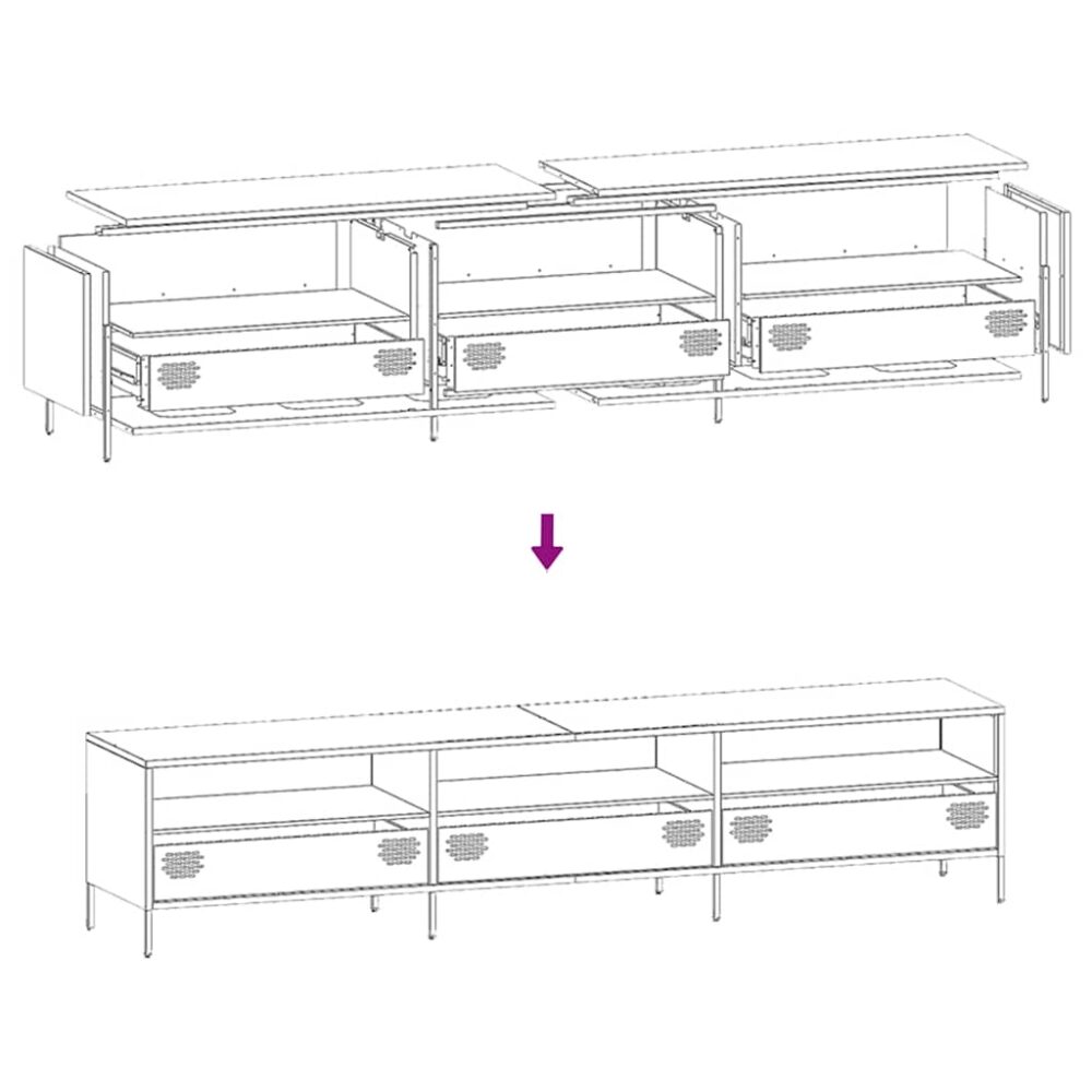 Este móvel de TV resistente com um estilo industrial é um complemento intemporal para o seu quarto ou sala de estar. Material estável: a estrutura do suporte de TV é feita de aço laminado a frio. O aço laminado a frio é um tipo de aço de baixo carbono produzido pelo método “de laminação a frio” e processado a temperaturas ambientes quase normais. O aço laminado a frio tem uma superfície mais lisa, maior resistência e maior precisão.Espaço de arrumação amplo: o móvel com 3 compartimentos e 3 gavetas oferece um amplo espaço de arrumação para manter vários artigos essenciais do dia-a-dia bem organizados e fáceis de alcançar.Pés de enroscar ajustáveis: este aparador de TV está equipado com quatro pés de enroscar ajustáveis para compensar pisos irregulares, garantindo estabilidade e equilíbrio.Fácil de limpar: o móvel de metal é fácil de limpar com um pano húmido e requer menos manutenção.