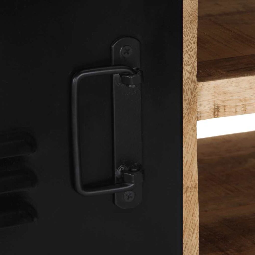 Este armário de televisão em madeira, com um amplo espaço de arrumação, é um complemento prático e atraente para a sua sala de estar ou quarto. Material robusto e estável: a madeira de mangueira maciça, uma robusta madeira tropical, é altamente favorecida no fabrico de móveis dada a sua excecional durabilidade e resistência. Os bonitos grãos da madeira tornam cada peça de mobiliário ligeiramente diferente das restantes.Amplo espaço de armazenamento: Este suporte de TV oferece um amplo espaço de armazenamento para manter as suas revistas, livros, DVD e dispositivos multimédia bem organizados e ao seu alcance.Puxadores de metal: este móvel está equipado com puxadores de metal para facilitar o acesso e acrescentar um elegante estilo industrial ao seu design.Estrutura estável e duradoura: a estrutura de ferro do suporte de TV realça o seu interior com um estilo industrial e proporciona uma durabilidade e estabilidade excecionais.Tampo estável e robusto: o tampo robusto é ideal para colocar a sua TV e sistemas de som ou alguns artigos decorativos, tais como vasos com plantas.