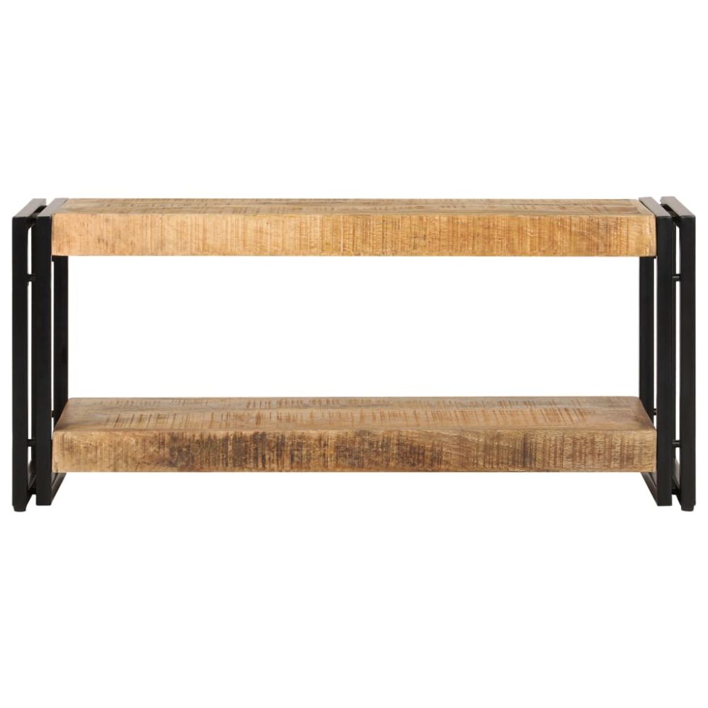 O móvel HiFi é feito em madeira de mangueira maciça, uma madeira dura com grãos densos. A madeira de mangueira áspera não só possui força para suportar o peso, como também suporta o desgaste do tempo. Assim, este móvel de corredor com um design bonito, é extremamente estável, durável e apelativo. Este móvel para estéreo é totalmente feito à mão e os grãos da madeira esteticamente atraentes tornam cada peça de mobiliário distinta e ligeiramente diferente das restantes. As pernas em ferro revestido a pó contribuem para a sua robustez e estilo industrial. Este armário possui uma prateleira, fornecendo um amplo espaço para arrumar os seus dispositivos de multimédia, livros, sapatos e vários outros artigos.