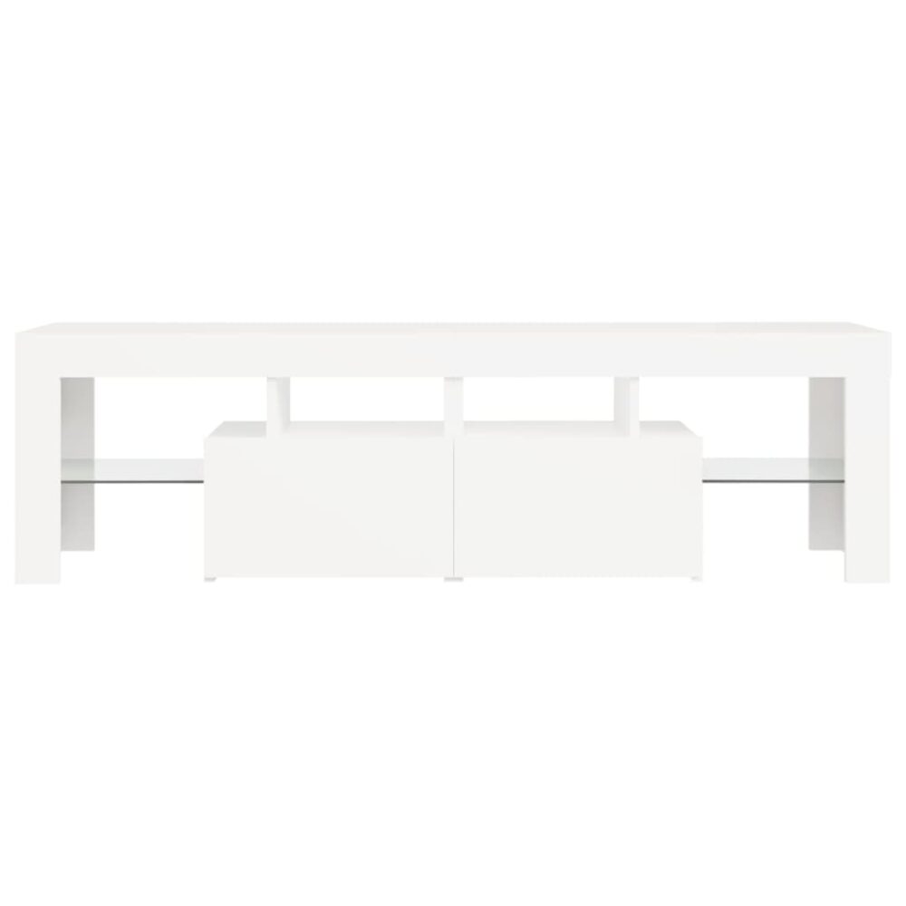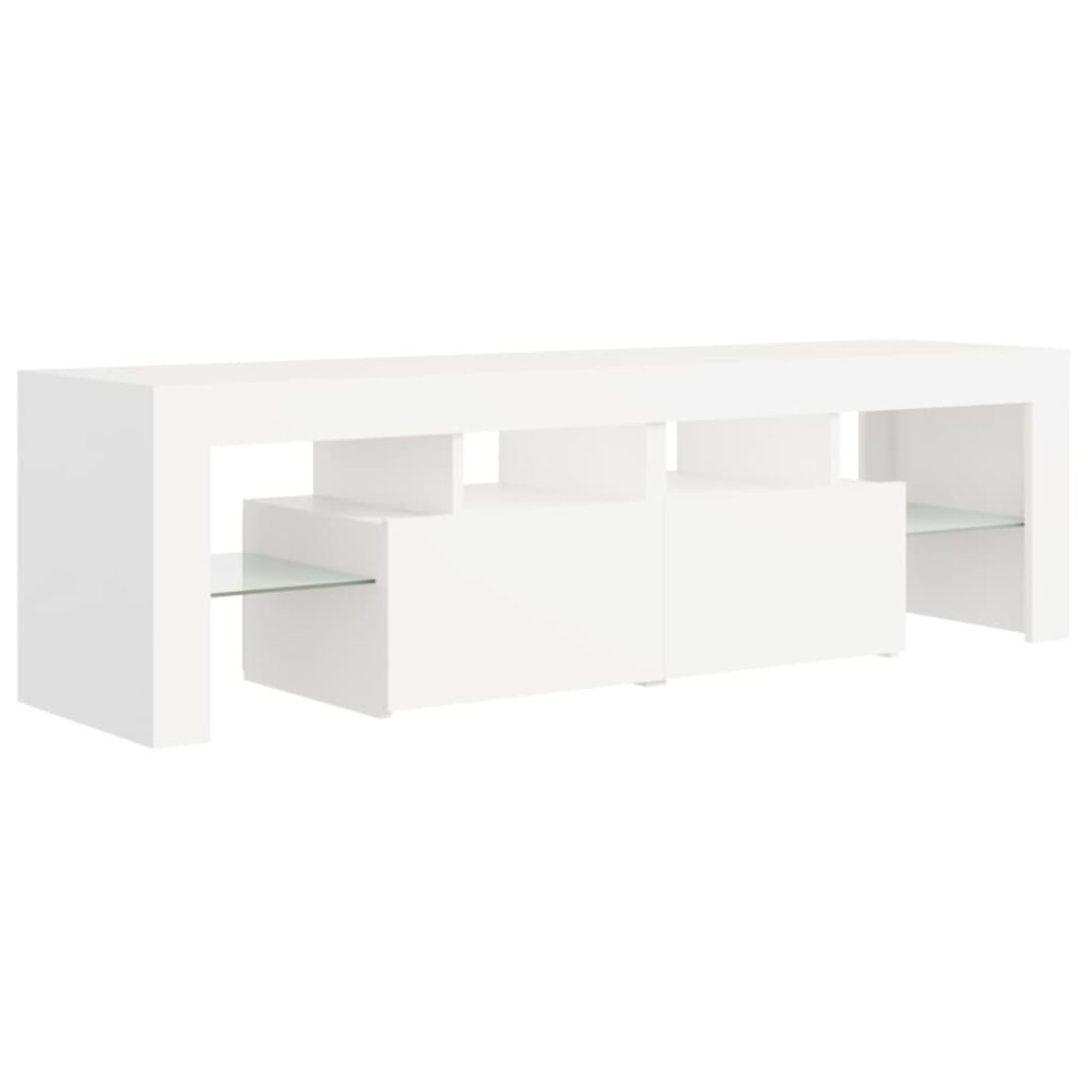 Com um design moderno e prático, este móvel de TV com luzes LED irá tornar-se definitivamente um ponto focal na sua divisão. Material prático: os móveis feitos com derivados de madeira possuem uma qualidade excecional, com uma superfície suave, bem como apresentam força, estabilidade e resistência à humidade.Luzes LED coloridas: o móvel de TV apresenta luzes LED RGB, que têm menus diferentes para mudar a cor das luzes e deixar a cor ajustar-se automaticamente de forma diferente. As luzes LED sublinham o aspeto moderno e contribuem para uma sensação de modernidade.Amplo espaço de arrumação: a unidade de TV proporciona bastante espaço de arrumação para manter as suas revistas, livros, controlos remotos e outros artigos bem organizados e ao alcance.Função de exposição: o tampo robusto do móvel multimédia é ideal para expor objetos decorativos, molduras ou vasos com plantas. Útil saber:O produto possui um conetor USB, mas a fonte de alimentação USB de 5 V certificada não está incluída.