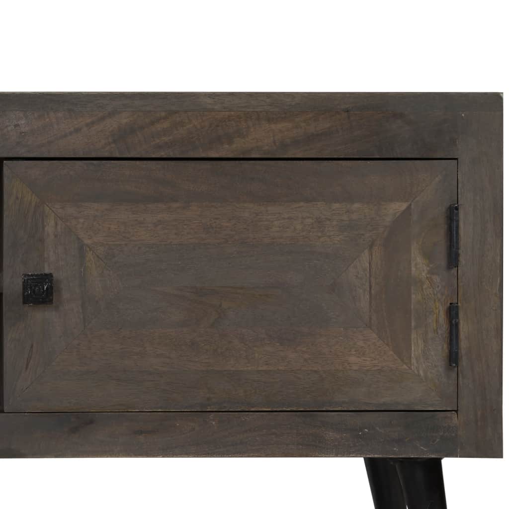 Este armário é feito à mão a partir de madeira de mangueira, que é maciça, estável, durável e bonita e o trabalho artesanal é um acréscimo ao seu estilo retro espetacular. Cada passo do processo é realizado com o maior cuidado, seja o polimento, a pintura ou o envernizamento. O trabalho artesanal e os belos grãos da madeira tornam cada peça de mobiliário única e ligeiramente diferente das restantes. Este armário possui um tampo resistente, no qual pode colocar itens decorativos tais como fruteiras ou vasos. Concebido com 2 prateleiras e 2 armários, este aparador possui um amplo espaço para manter os seus itens importantes organizados e ao seu alcance. Possui um orifício na parte de trás para acomodar os cabos. As suas pernas de aço também contribuem para a sua robustez e estilo industrial impressionante. A montagem é fácil.