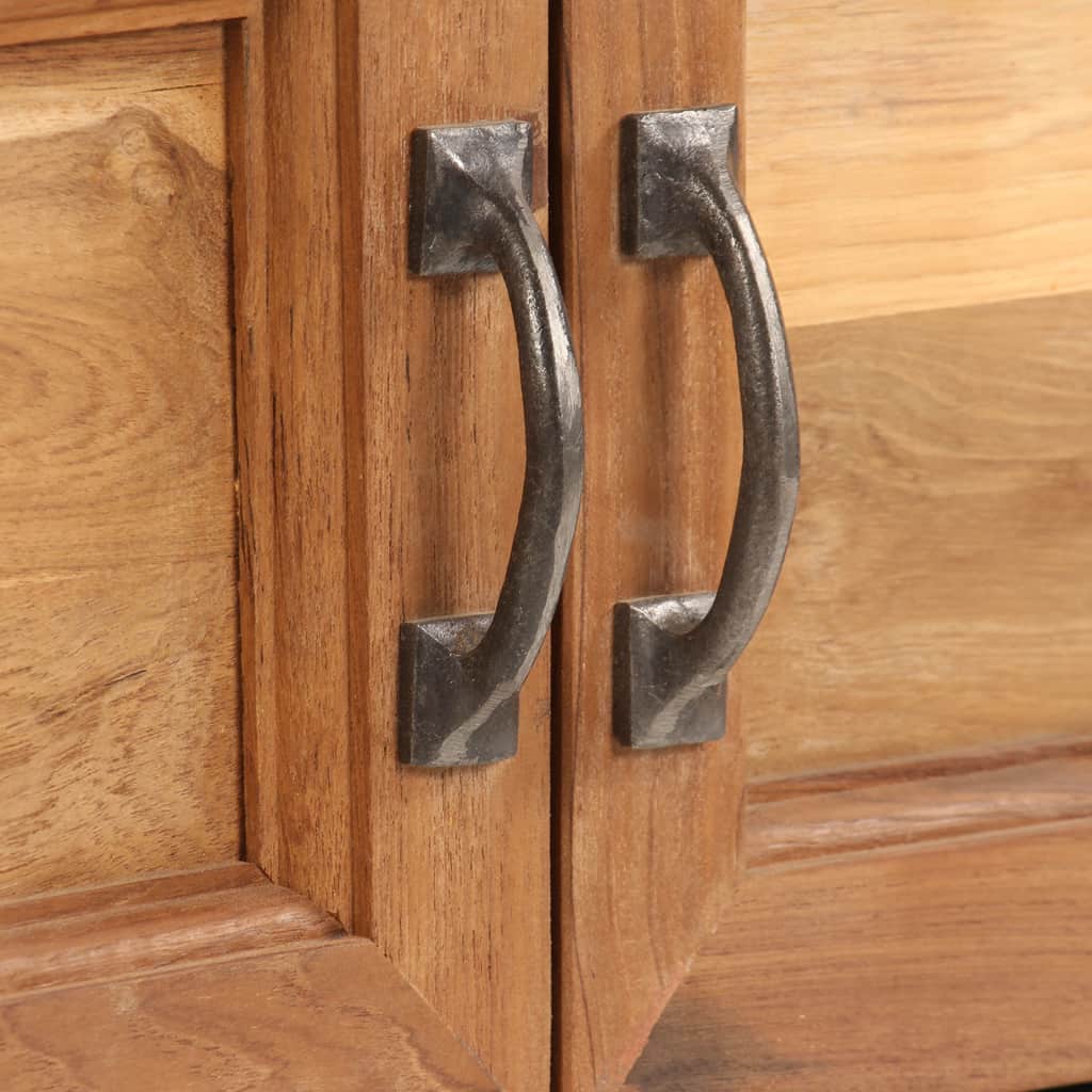O suporte de TV é feito em teca reciclada que recebeu um belo acabamento polido e lacado, para lhe atribuir um aspeto requintado. Os belos grãos da madeira tornam cada peça de mobiliário única e ligeiramente diferente das restantes. Esta unidade de TV possui uma superfície firme e estável, na qual poderá colocar a sua TV, uma fruteira, um vaso e outros artigos. Este móvel baixo possui um armário e dois compartimentos de armazenamento, que fornecem um amplo espaço para a arrumação de dispositivos e suportes multimédia ou quaisquer outros artigos que queira manter ao seu alcance. A estrutura de aço contribui para a robustez e estabilidade do armário, bem como para o seu estilo industrial. Este artigo já está montado. Não é necessária qualquer montagem.