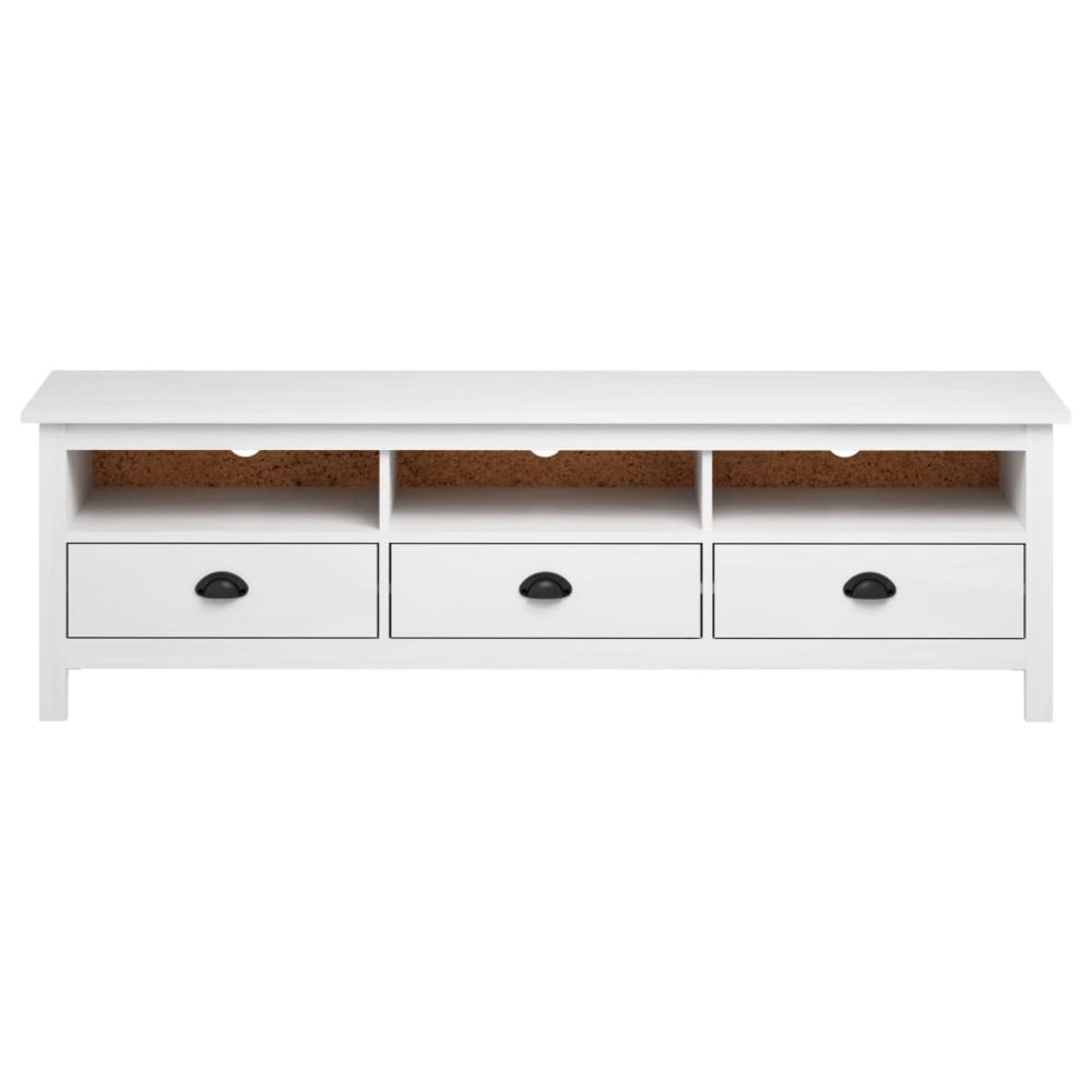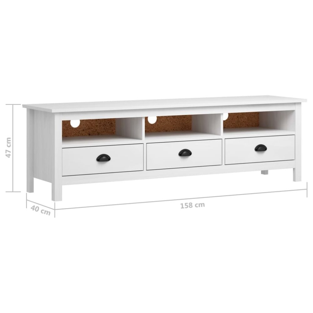 Feito em madeira de pinho maciça este suporte de TV é resistente e durável. O seu design elegante torna o móvel baixo num complemento prático e extraordinariamente decorativo para a sua casa. O móvel para estéreo possui 3 prateleiras e 3 gavetas, fornecendo um amplo espaço para manter todos os tipos de artigos mais pequenos tais como chaves, blocos de notas, canetas e outras bugigangas, devidamente organizados e ao seu alcance. O grande tampo é ainda ideal para acomodar a sua TV, router, dispositivos multimédia ou para expor objetos decorativos.