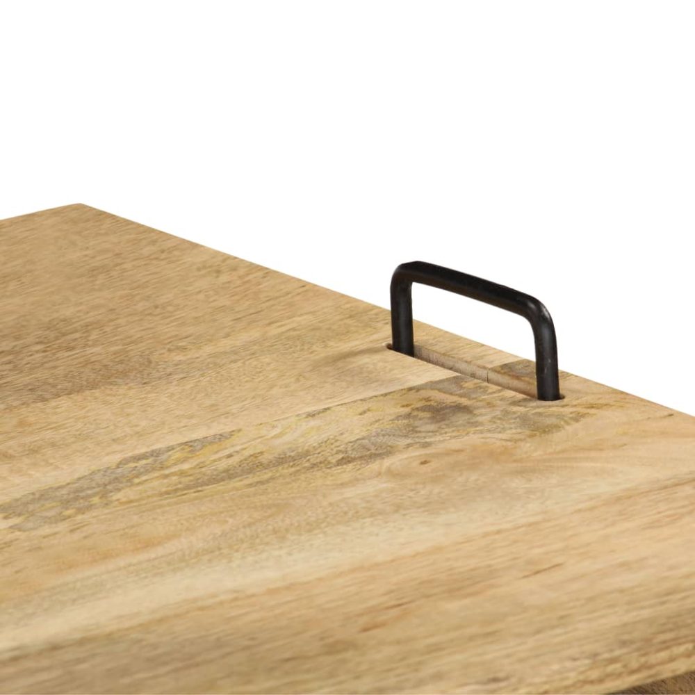 Construído a partir de madeira de mangueira maciça, o armário HiFi é altamente estável e durável. O topo é ideal para colocar a sua TV ou sistemas de som, bem como alguns itens decorativos tais como jarros e vasos com plantas. A prateleira fornece um amplo espaço de armazenamento para manter devidamente organizados os seus leitores de DVD, consolas de jogos, dispositivos de transmissão, suportes de multimédia, etc. As estruturas de aço contribuem para a robustez do móvel e para o seu estilo industrial. Cada etapa do processo de construção é realizada com o maior cuidado, seja o polimento ou o envernizamento. O móvel de TV é fácil de montar.