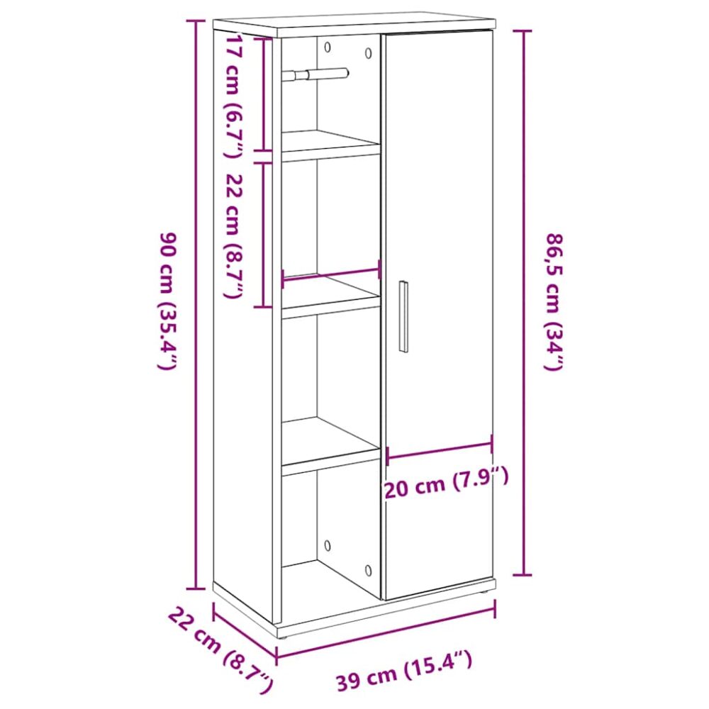 O armário da casa de banho é a escolha ideal para o seu espaço, combinando estilo com funcionalidade e oferecendo um amplo espaço de arrumação para manter os seus produtos de higiene pessoal e essenciais bem organizados. Material estável e durável: os derivados de madeira são um material durável e estável com uma superfície lisa que é resistente à humidade, deformação e rachadelas, tornando-se uma escolha fiável para uma variedade de projetos.Suporte de rolos: o armário de arrumação para casa de banho inclui um suporte para rolos de papel higiénico embutido, aumentando a conveniência ao manter o papel higiénico fácil de alcançar e bem organizado.Amplo espaço de armazenamento: este armário de banho oferece opções versáteis de armazenamento com compartimentos abertos para fácil acesso a itens usados com frequência e um armário fechado para armazenar itens maiores, como toalhas e produtos de limpeza.Instalação personalizável: pode montar a porta do lado esquerdo ou direito da abertura do armário, de acordo com as suas preferências pessoais ou requisitos de espaço.Fácil de cuidar: graças à sua superfície suave, o armário de casa de banho é fácil de limpar com um pano húmido e requer menos manutenção. Atenção:Para evitar que tombe, este produto deve ser utilizado com o dispositivo de fixação na parede fornecido.