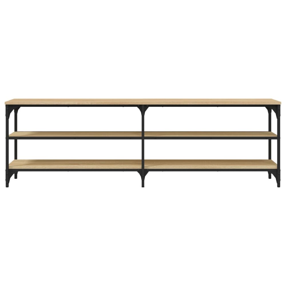 Este armário de TV com um design industrial dá um toque vintage à sua divisão! Material durável: os derivados de madeira possuem uma qualidade excecional e oferecem uma superfície suave bem como força, estabilidade e resistência à humidade.Prateleiras de arrumação abertas: o suporte de TV possui três prateleiras abertas, que são perfeitas para colocar recetores, DVDs e consolas de jogos.Estrutura estável: a estrutura de ferro do móvel baixo assegura robustez e estabilidade.Pés ajustáveis: o armário de TV está equipado com 4 pés ajustáveis que podem proteger o seu chão de riscos e mantê-lo estável em pisos ligeiramente irregulares.Função de exposição: o tampo robusto da unidade de TV é ideal para expor artigos decorativos, tais como molduras e plantas. Atenção:Para evitar que o produto se vire, deve utilizar o dispositivo de fixação na parede fornecido.