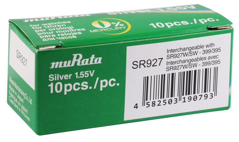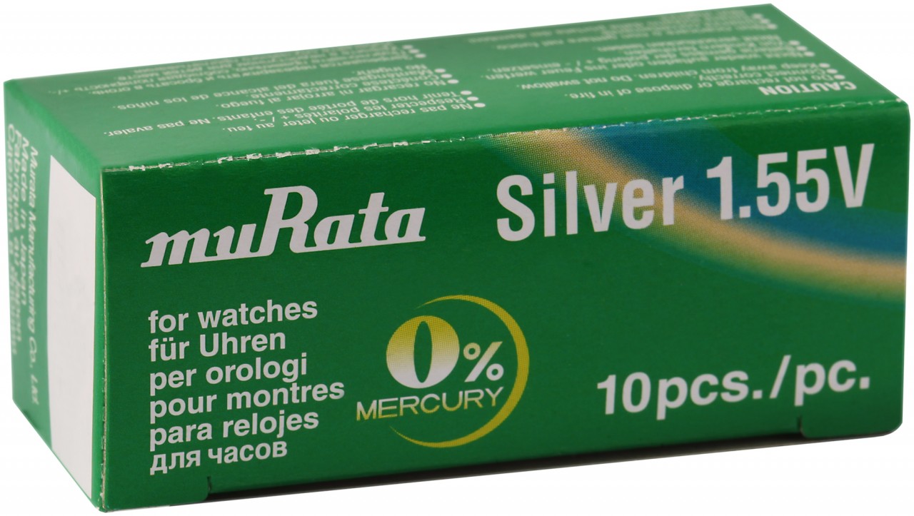 Pilhas de botão de óxido de prata da marca muRata. 0% mercúrio. Embalagem de 10 unidades.