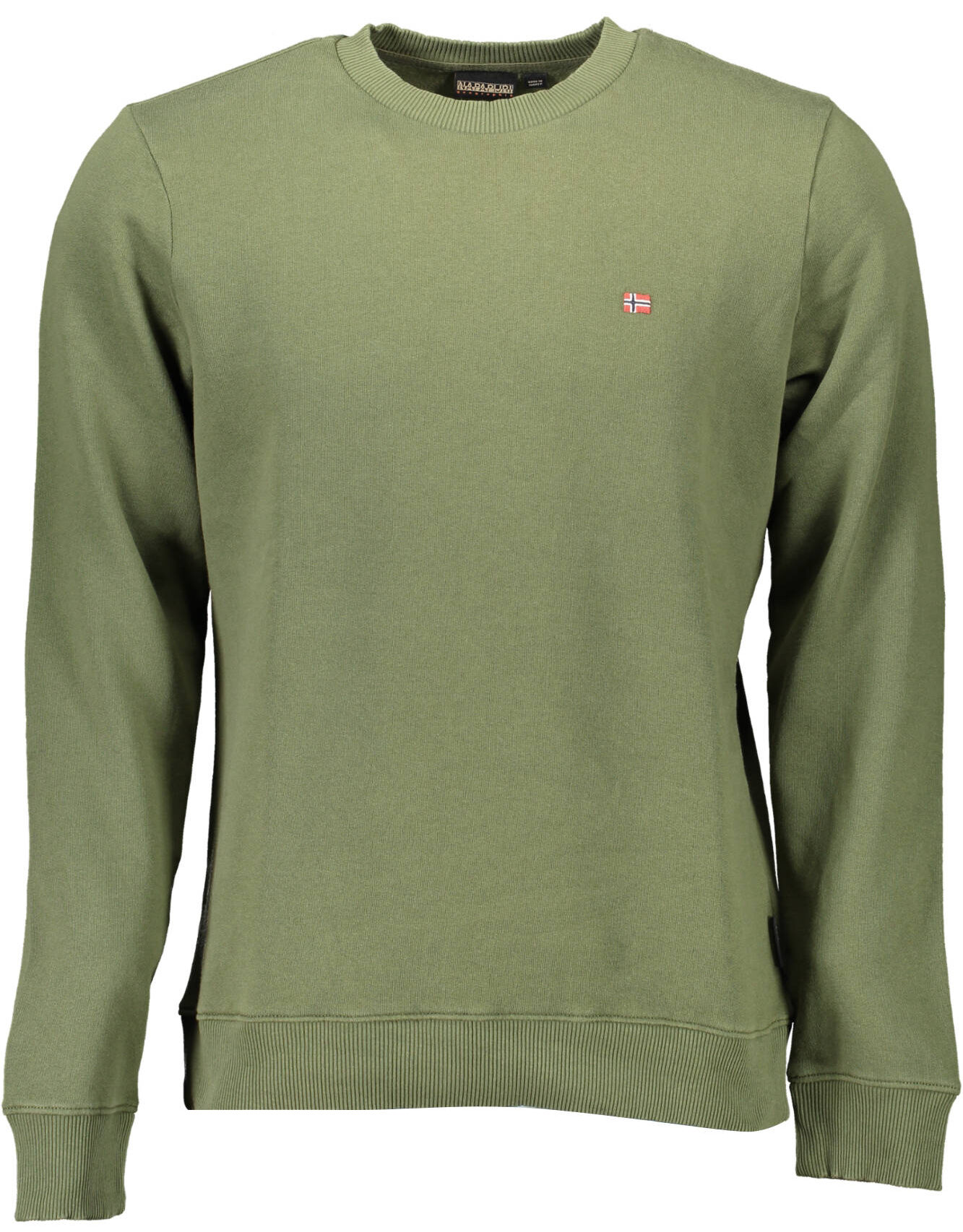 Moletom de manga comprida, ajuste regular, fleece, gola redonda, logotipo bordado, 70% algodão orgânico