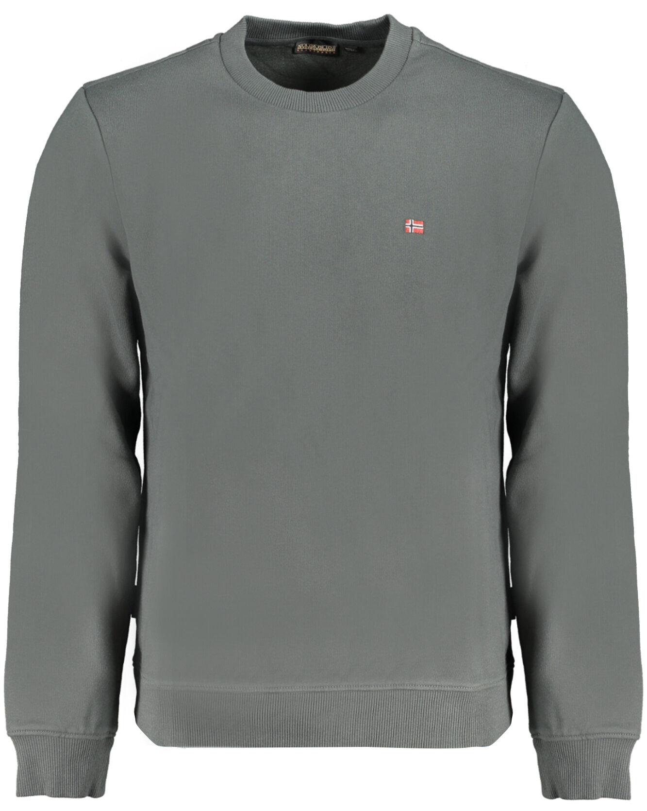 Moletom de manga comprida, ajuste regular, moletom, gola redonda, bordado, logotipo, 70% algodão orgânico