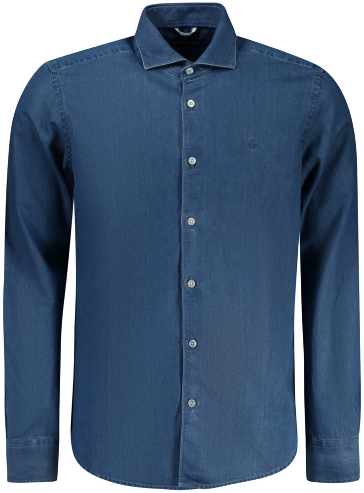 Camisa de manga comprida com ajuste regular, gola francesa e punhos com 1 botão.