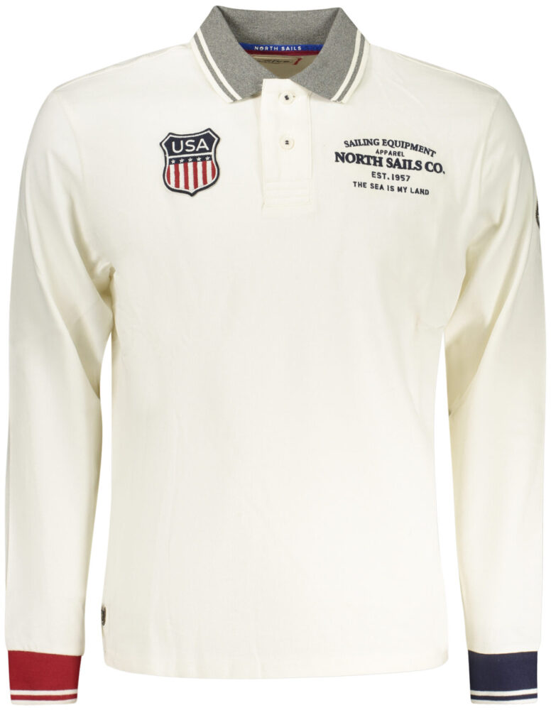Pólo de mangas compridas com fecho de 2 botões, bordado decorativo, apliques e logótipo aplicado.