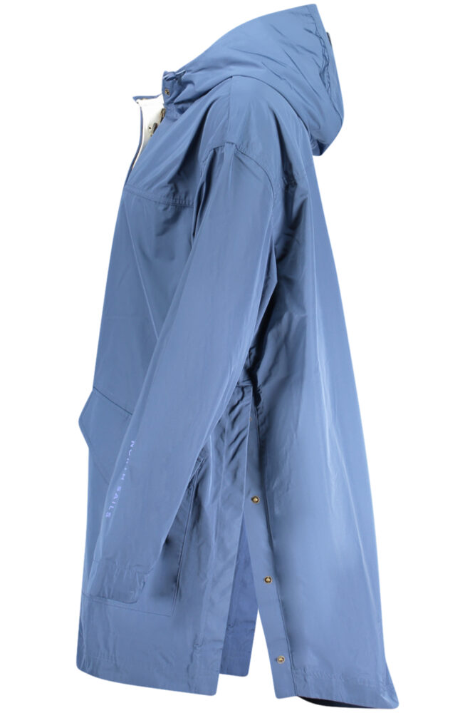 PARKA MANGA COMPRIDA COM CAPUZ, 2 BOLSOS, BOTÕES E ZÍPER, AUTOMÁTICOS LATERAIS, ESTAMPA, LOGOTIPO