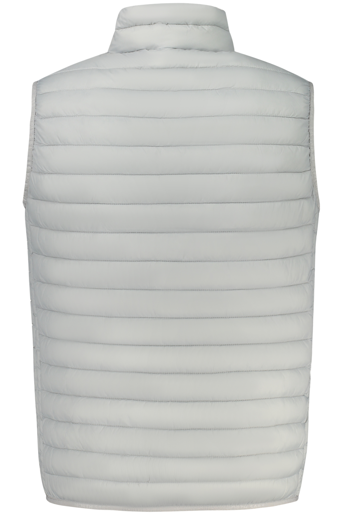 Colete sem mangas confeccionado em mistura de poliéster e poliamida, oferecendo leveza, resistência e praticidade.