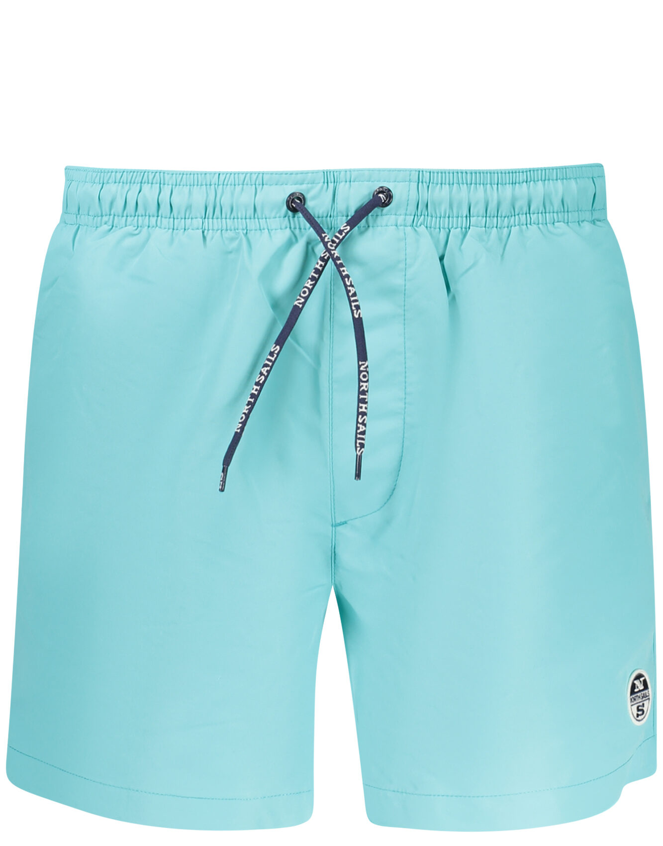 Calção de natação com cintura elástica, cadarço, bolsos, forro interno, aplique e logótipo