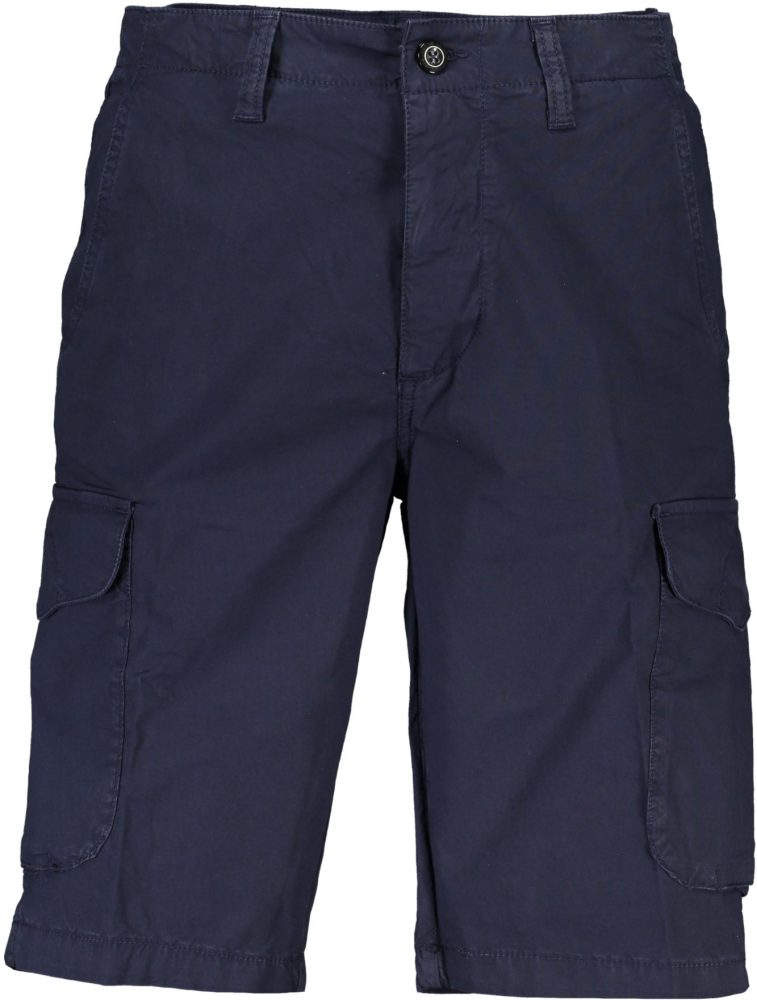 Bermuda regular fit, 4 bolsos, 2 bolsos laterais grandes, botão e zíper, logotipo.