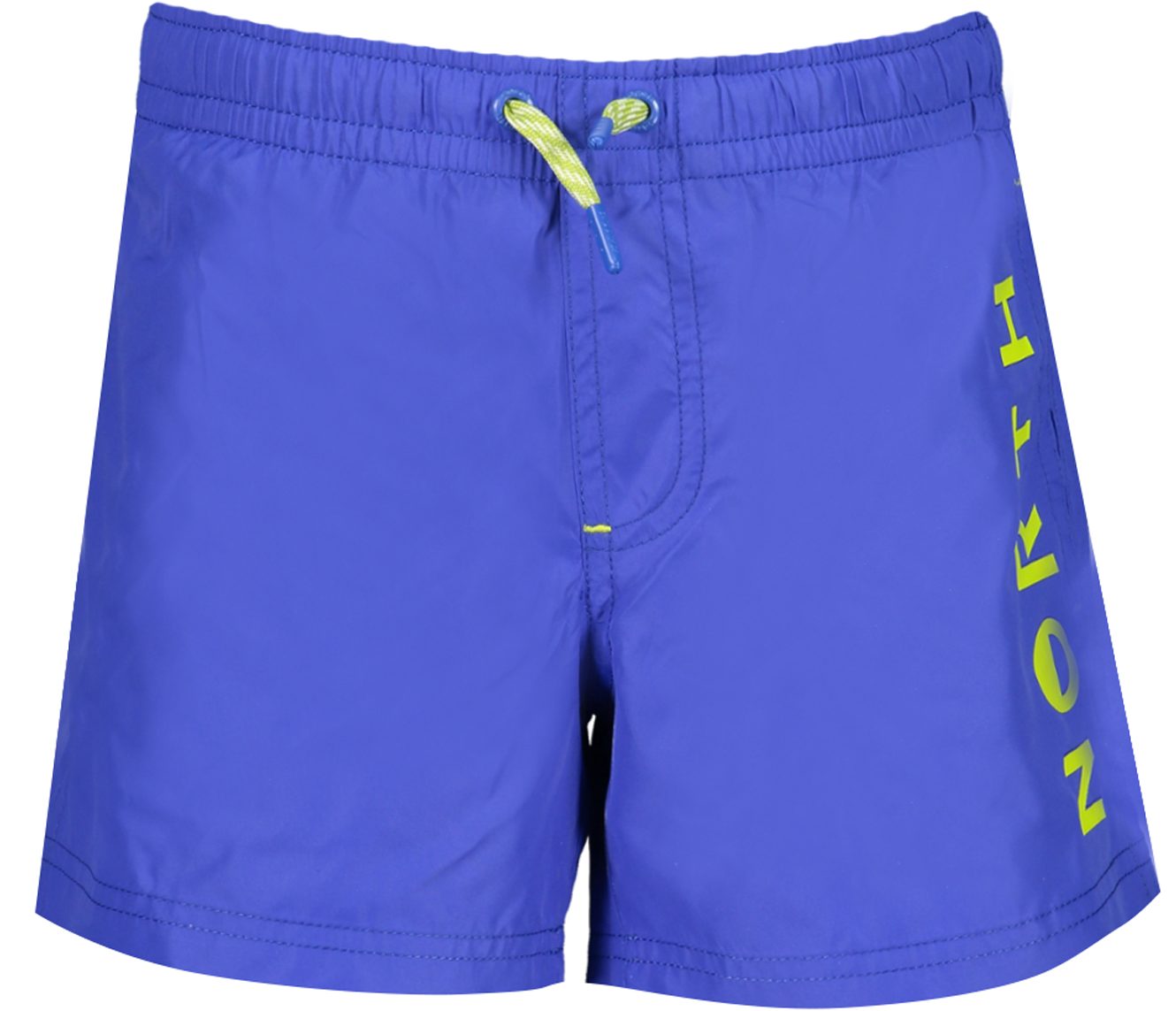 Calções de banho com interior em slip, 2 bolsos, 1 bolso traseiro, cintura elástica com cordão, logótipo estampado e algodão orgânico.