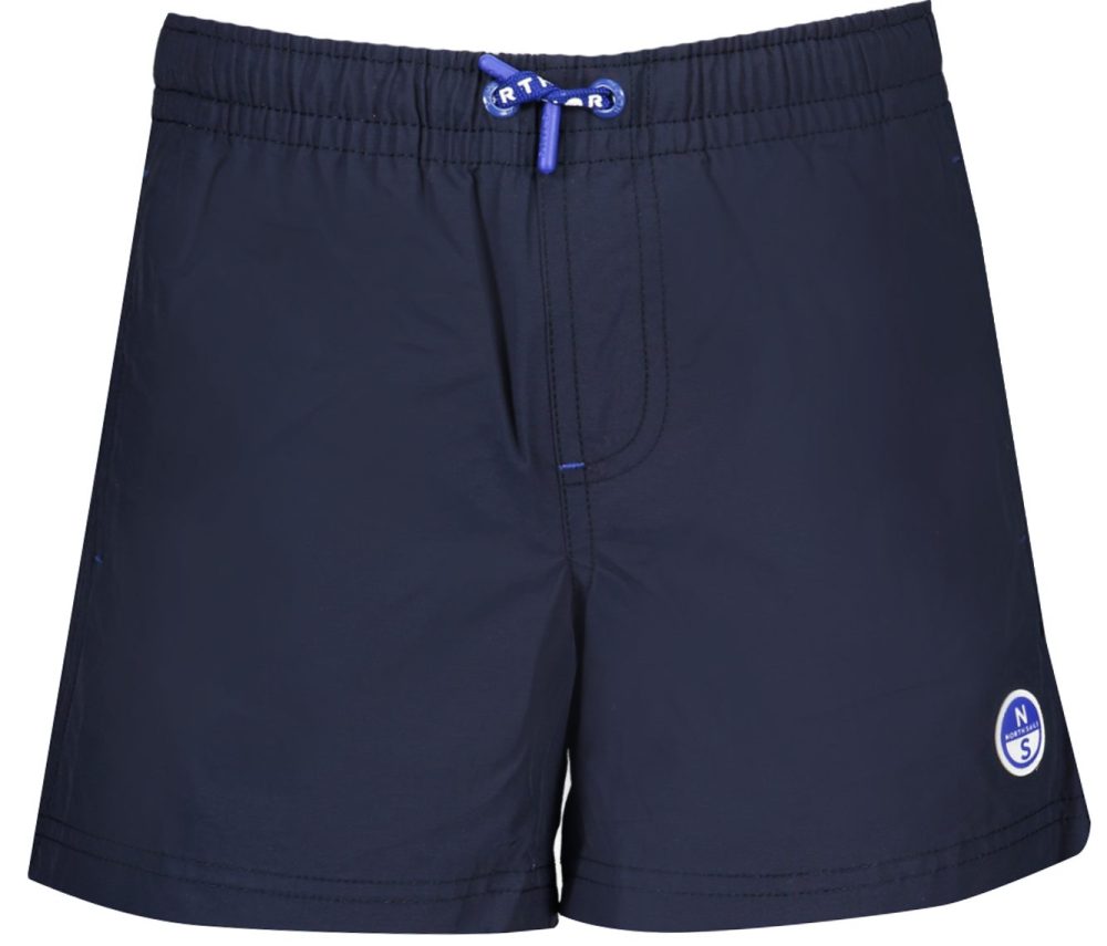 Calções de banho com interior em slip, 2 bolsos, 1 bolso traseiro, cintura elástica com renda, detalhes de contraste, logotipo, algodão orgânico.