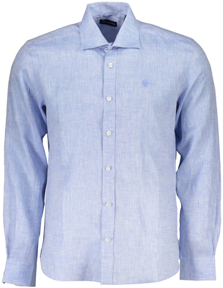 Camisa de manga comprida, corte regular, gola italiana, punhos com 1 botão e fibras orgânicas
