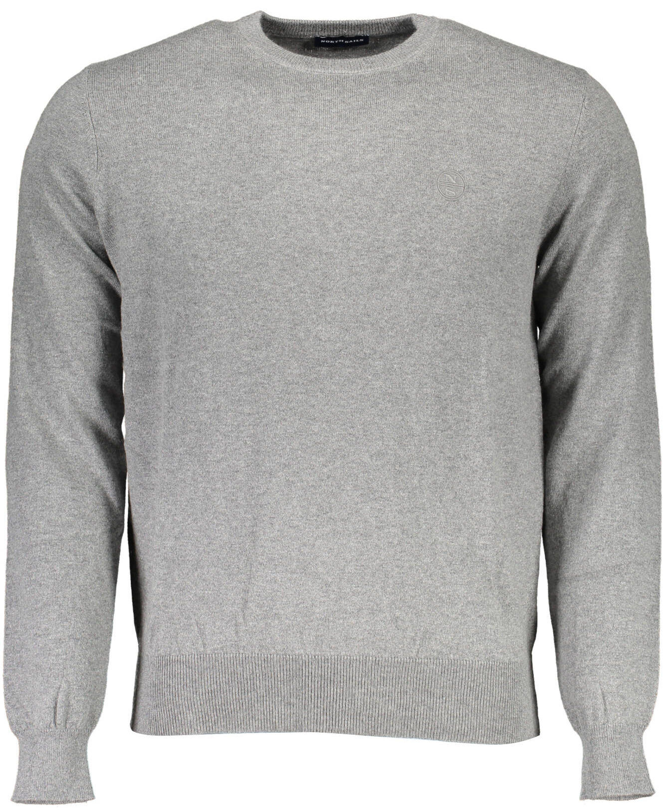 Camisola de manga comprida, gola redonda, logotipo e fibras naturais