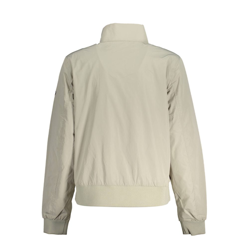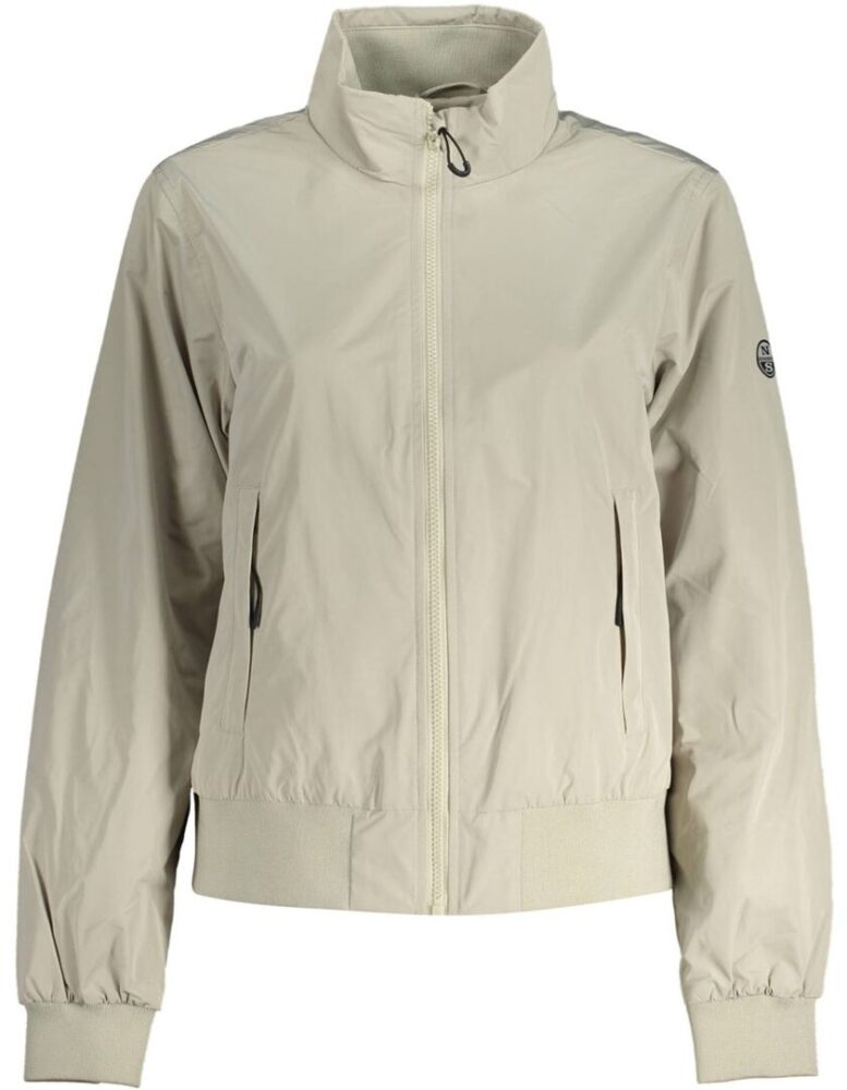 Casaco de manga comprida, 2 bolsos externos, 1 bolso interno, resistente à água, zip, logótipo.