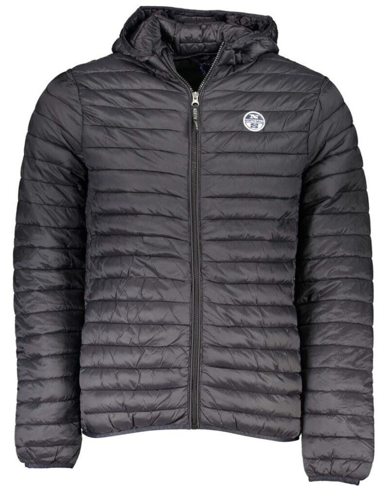 Casaco de manga comprida com capuz, 2 bolsos externos, 2 bolsos internos, zíper, logótipo.