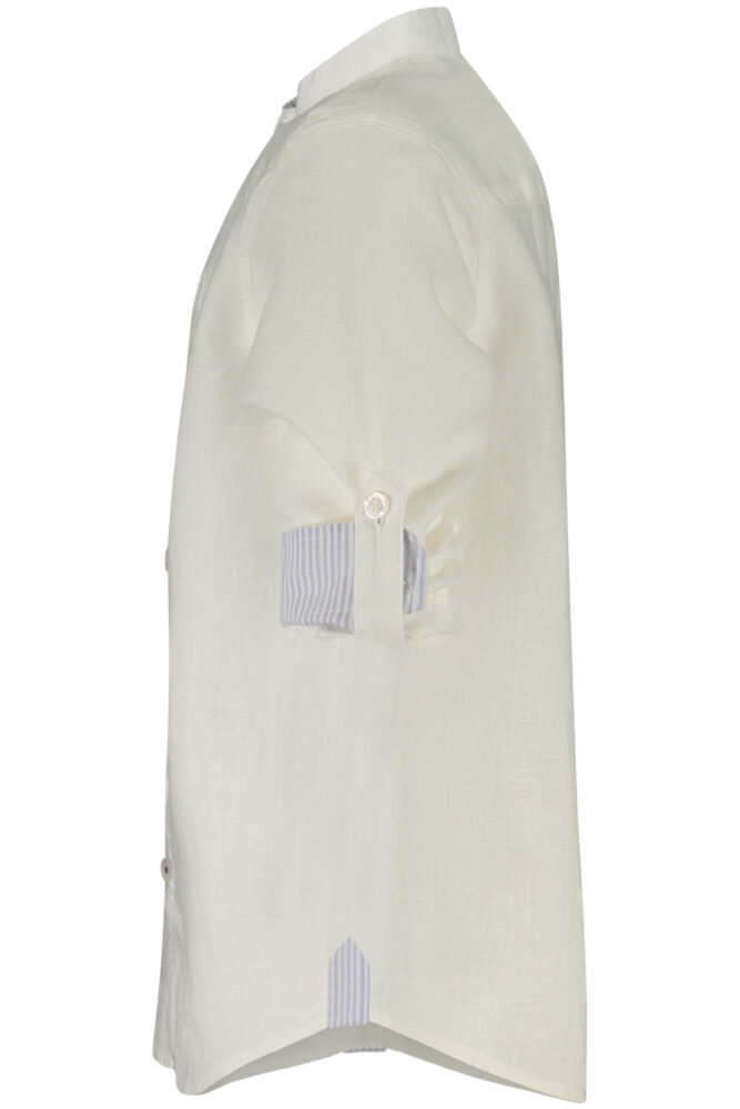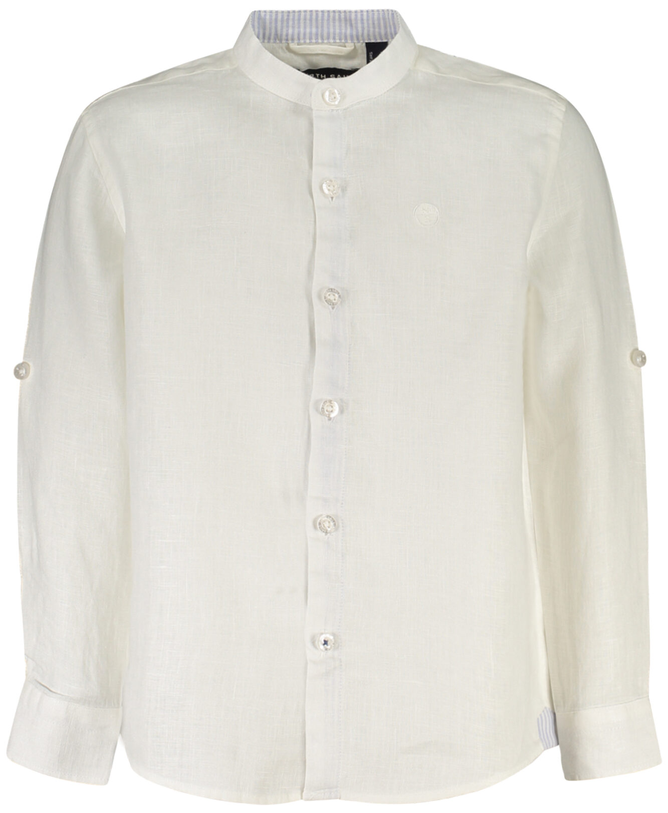 Camisa de manga comprida , gola coreana, punho 1 botão ,botões, bordado , logotipo