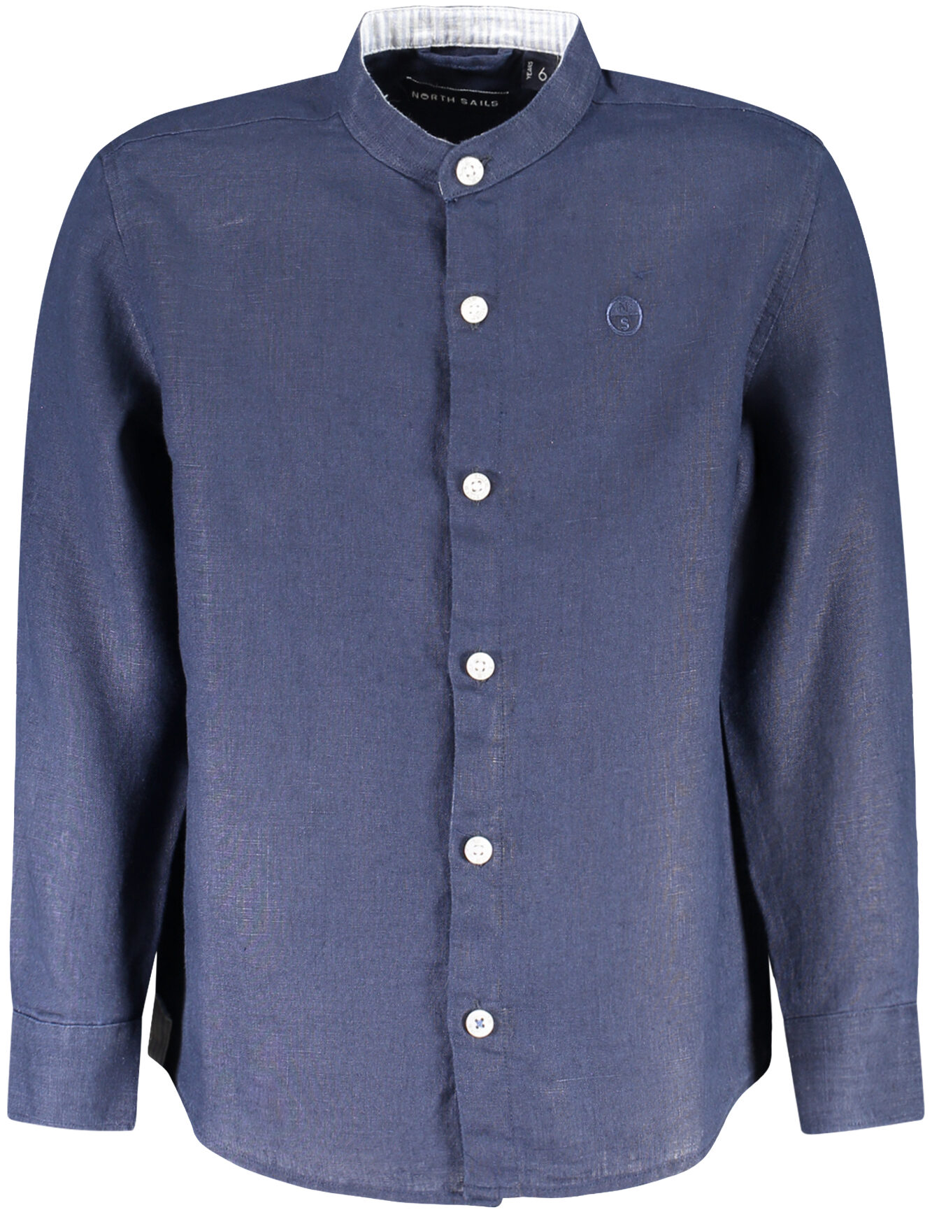 Camisa de manga comprida , gola coreana, punho 1 botão ,botões, bordado , logotipo