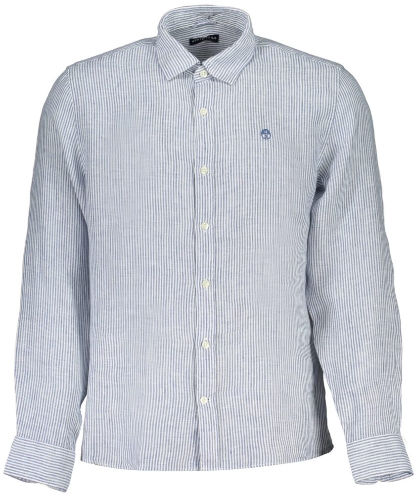 Camisa de manga comprida, ajuste regular, listrado, colar francês, punhos de 1 botão, logótipo bordado, algodão orgânico.
