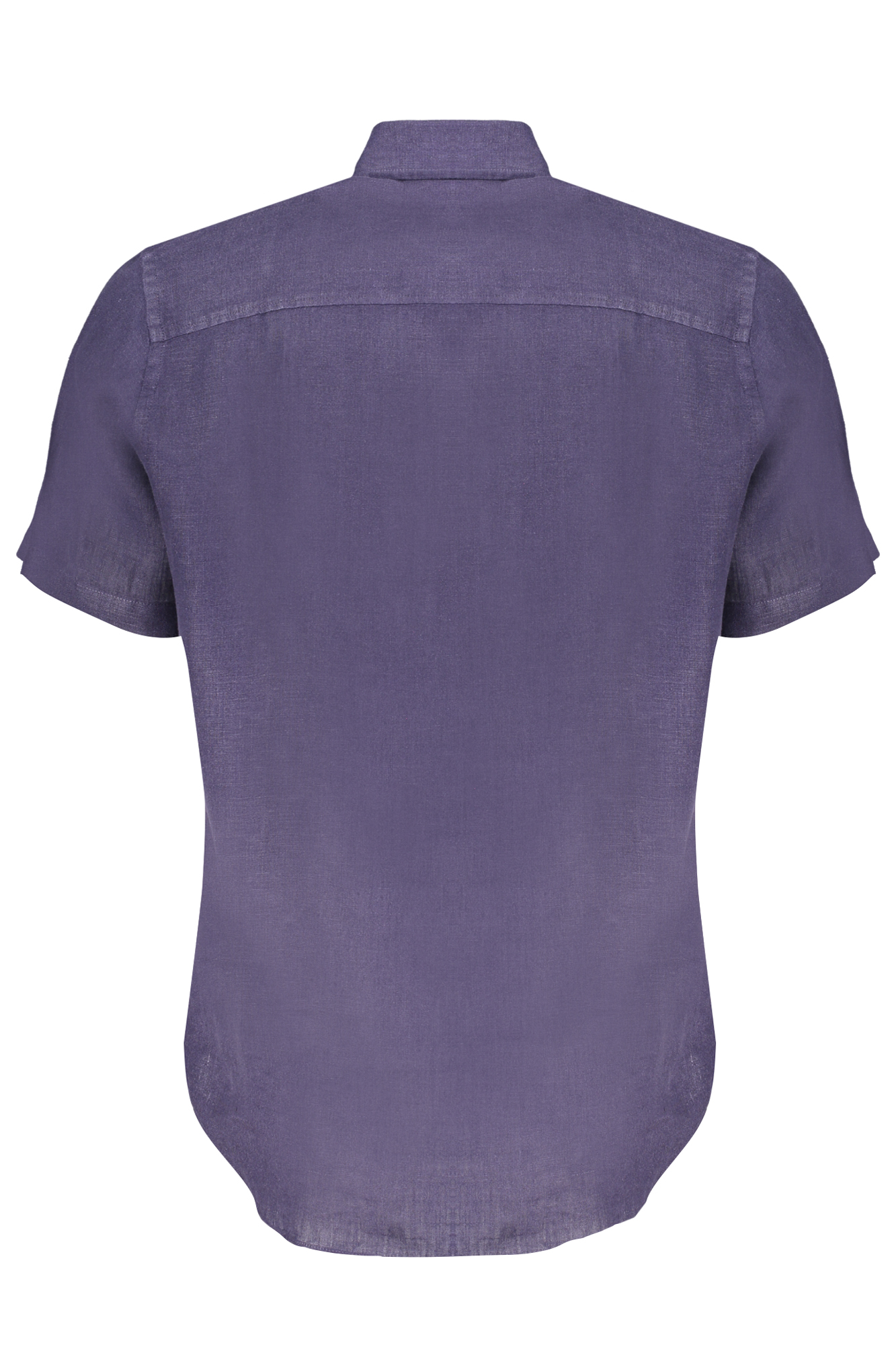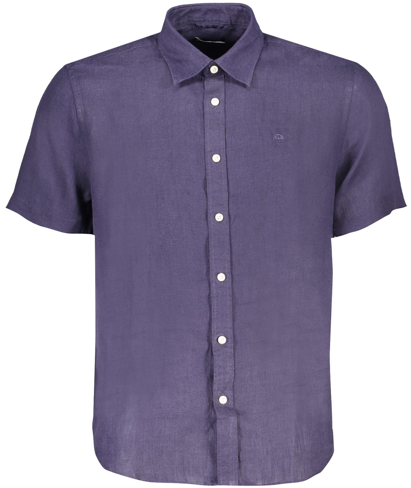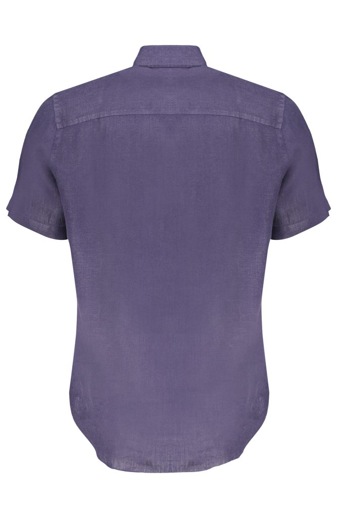 Camisa de manga curta, colar italiano, bordado, botões, logotipo, algodão orgânico.