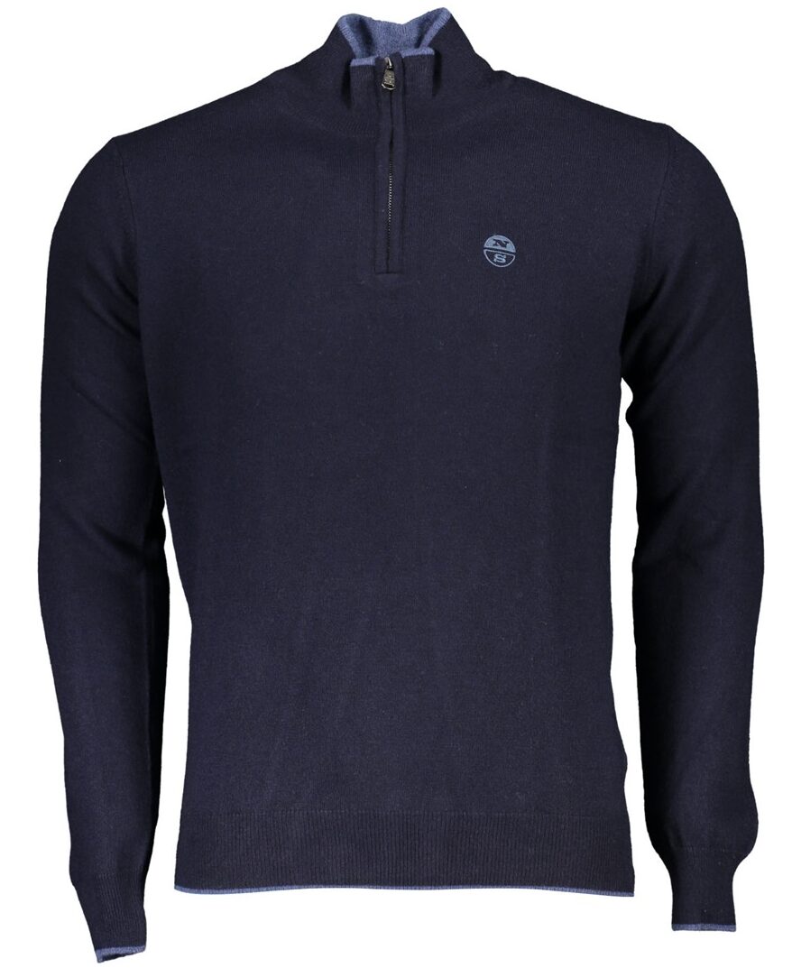 Suéter de manga comprida, gola alta, meio zíper, detalhes de contraste, bordado, logótipo, fibras recicladas.