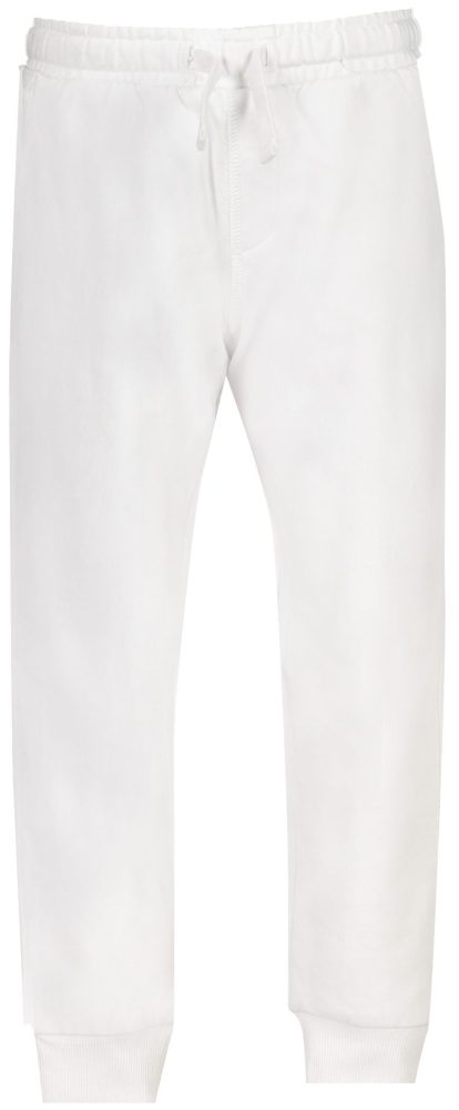 Calças esportivas escovadas cintura elástica com atacadores, 2 bolsos, elástico no tornozelo, logótipo estampado, algodão orgânico.