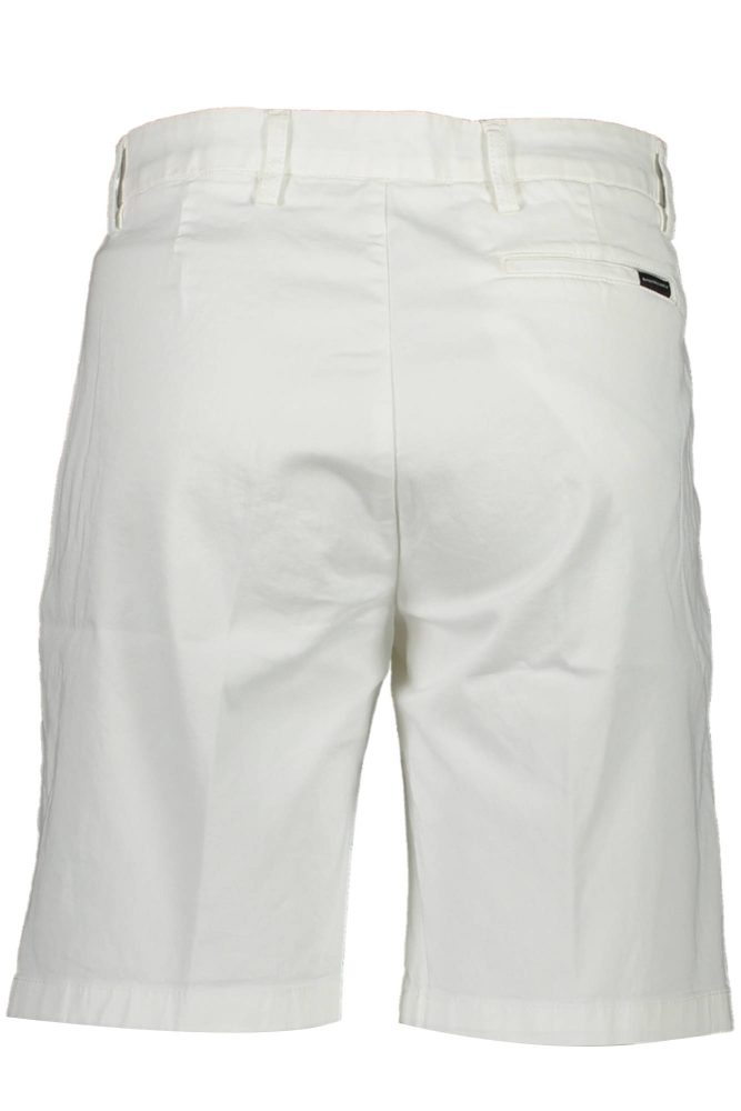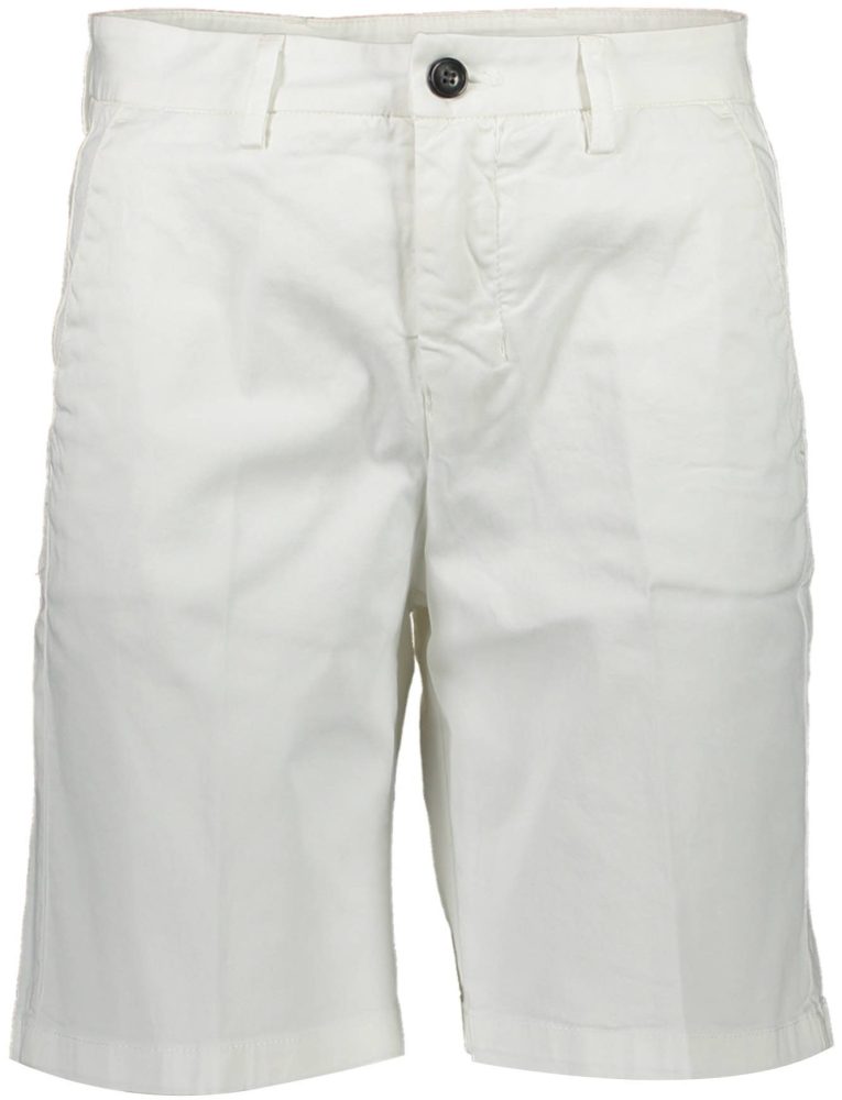 Calções bermuda, corte justo, 3 bolsos, botão e zíper, logótipo, fibras orgânicas.