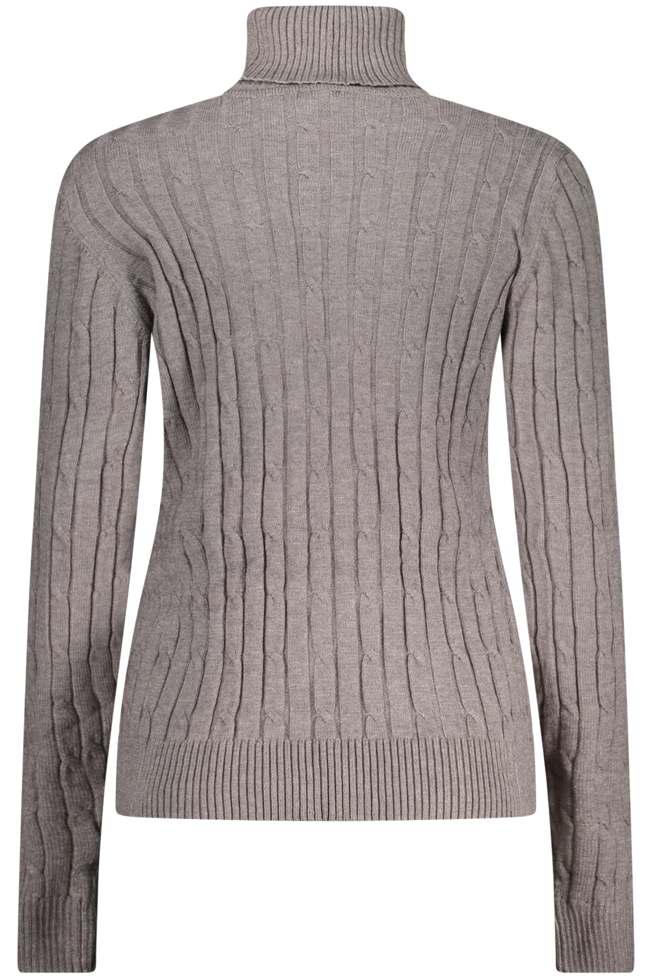 Camisola de manga comprida com gola alta, detalhe torcido e logótipo aplicado.