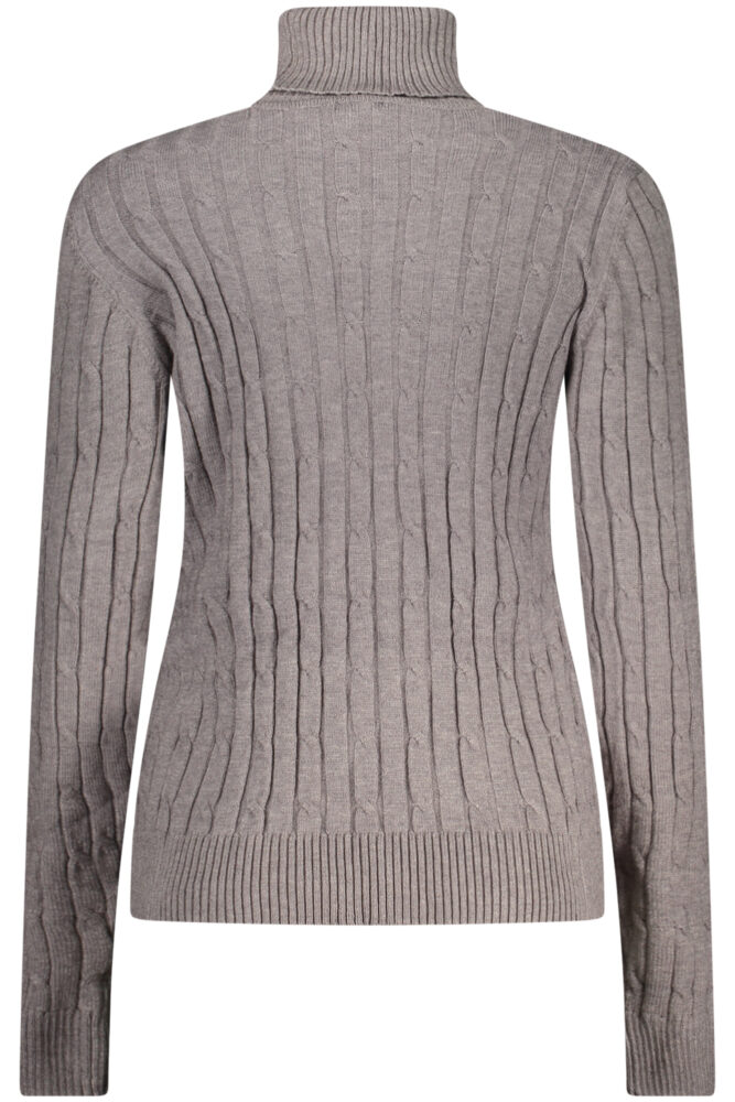 Camisola de manga comprida com gola alta, detalhe torcido e logótipo aplicado.
