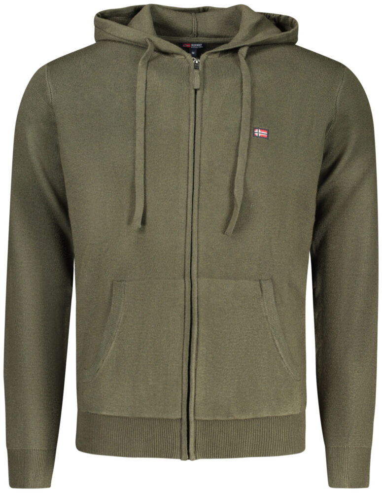 Casaco de manga comprida com capuz, fecho de correr frontal, bordado decorativo e logótipo aplicado.