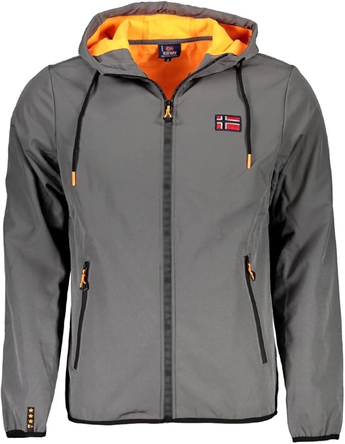 Casaco de manga comprida com capuz, 2 bolsos externos, 2 bolsos internos, detalhes contrastantes, fecho zíper, logótipo.
