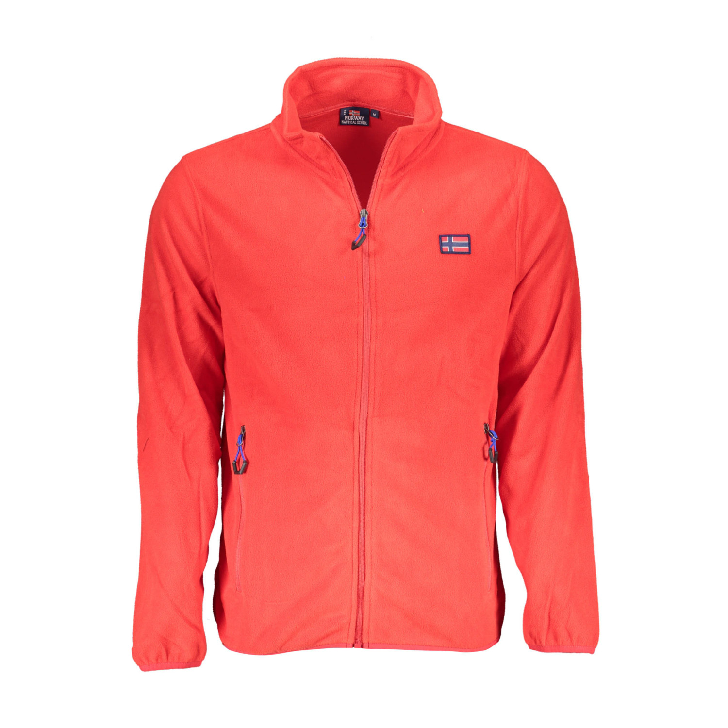 Casaco manga comprida plush, 2 bolsos externos, 2 bolsos internos, detalhes de contraste, zíper, aplicação, logo