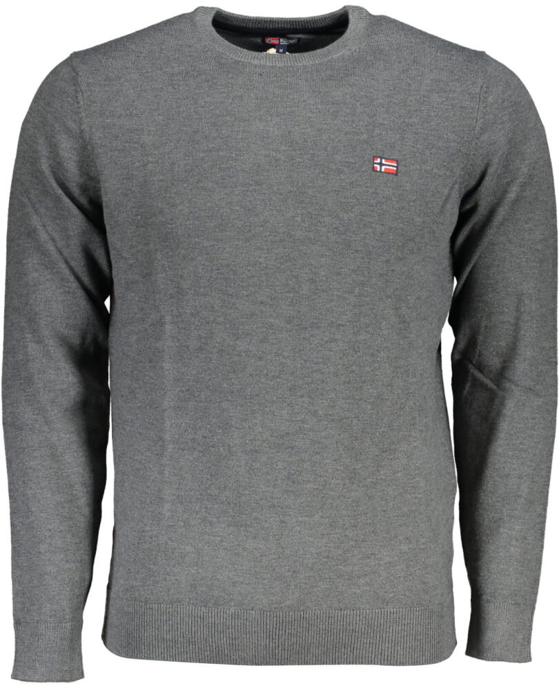 Suéter de manga comprida, gola redonda, bordado, logotipo