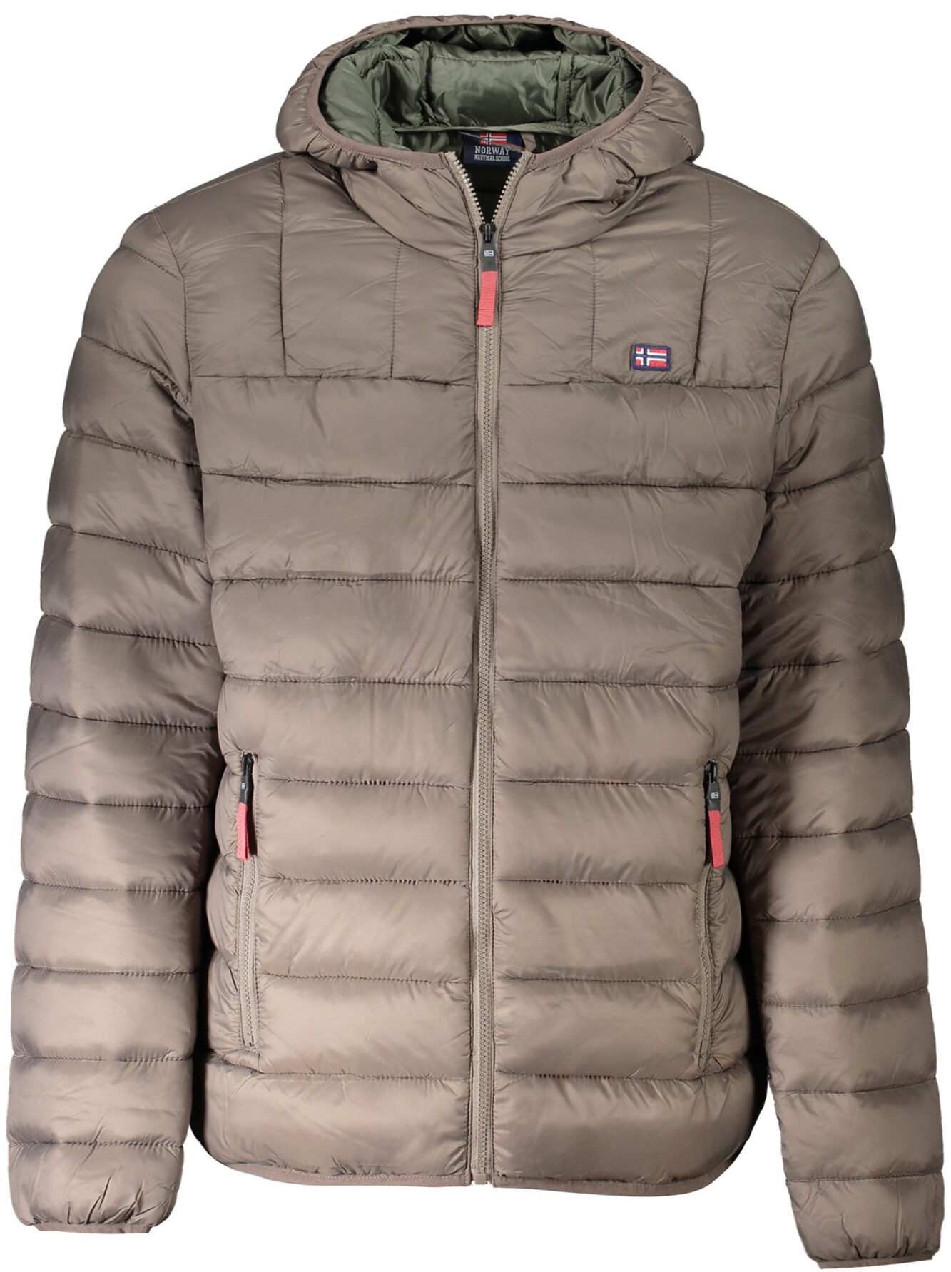CASACO DE MANGA COMPRIDA COM CAPUZ, 2 BOLSOS EXTERIORES, PORMENORES EM CONTRASTE, FECHO DE CORRER, APLICAÇÃO, LOGÓTIPO