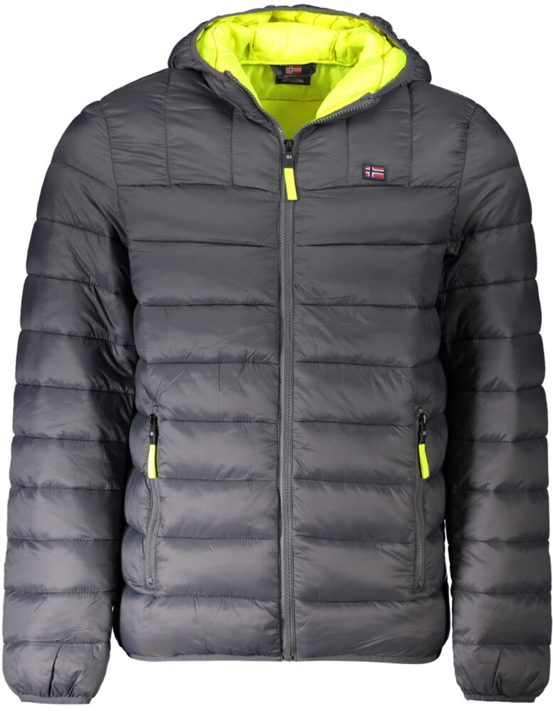 CASACO DE MANGA COMPRIDA COM CAPUZ, 2 BOLSOS EXTERIORES, PORMENORES EM CONTRASTE, FECHO DE CORRER, APLICAÇÃO, LOGÓTIPO