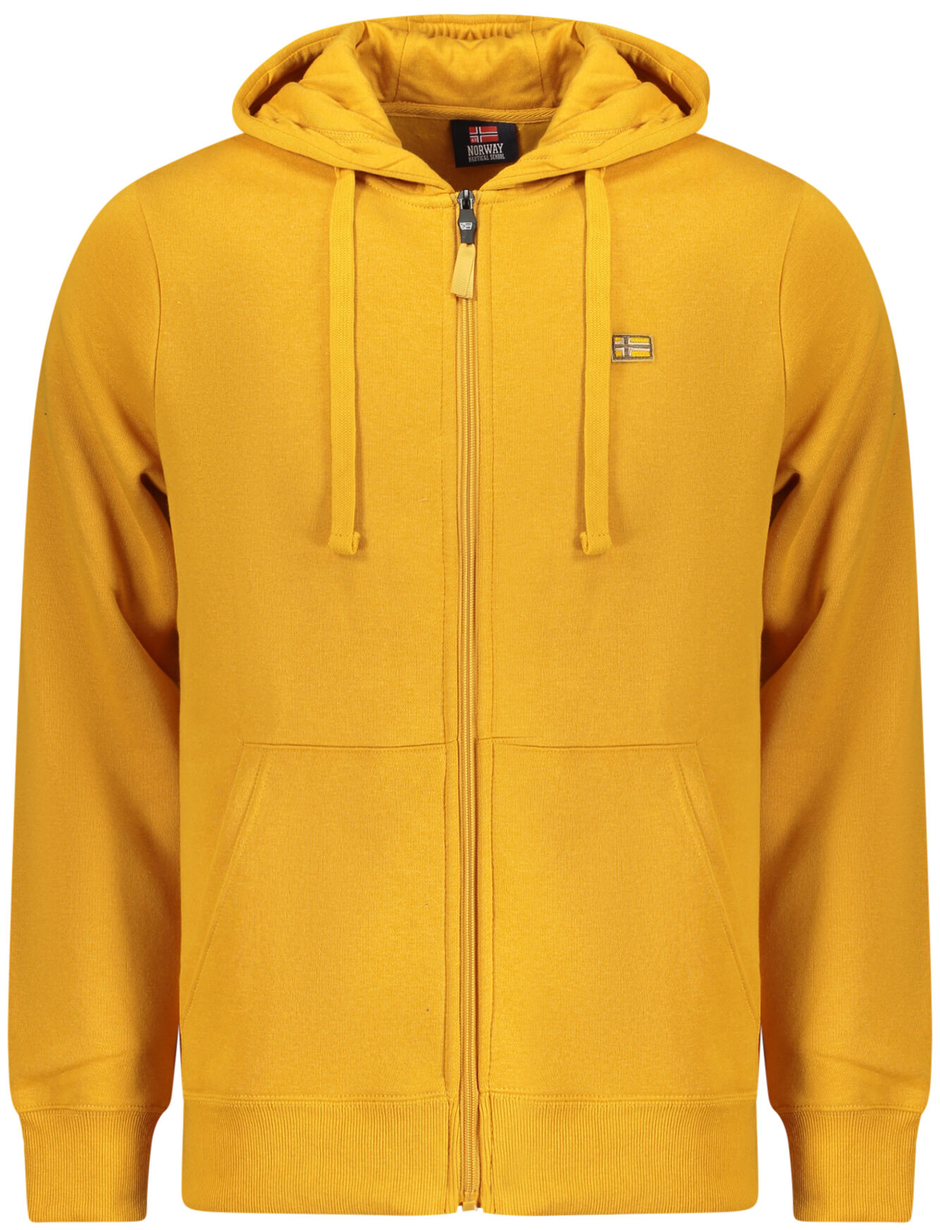 Casaco de manga comprida com capuz, estilo camisola, com 2 bolsos centrais, fecho de correr frontal, estampado moderno, aplicação decorativa e logótipo da marca.