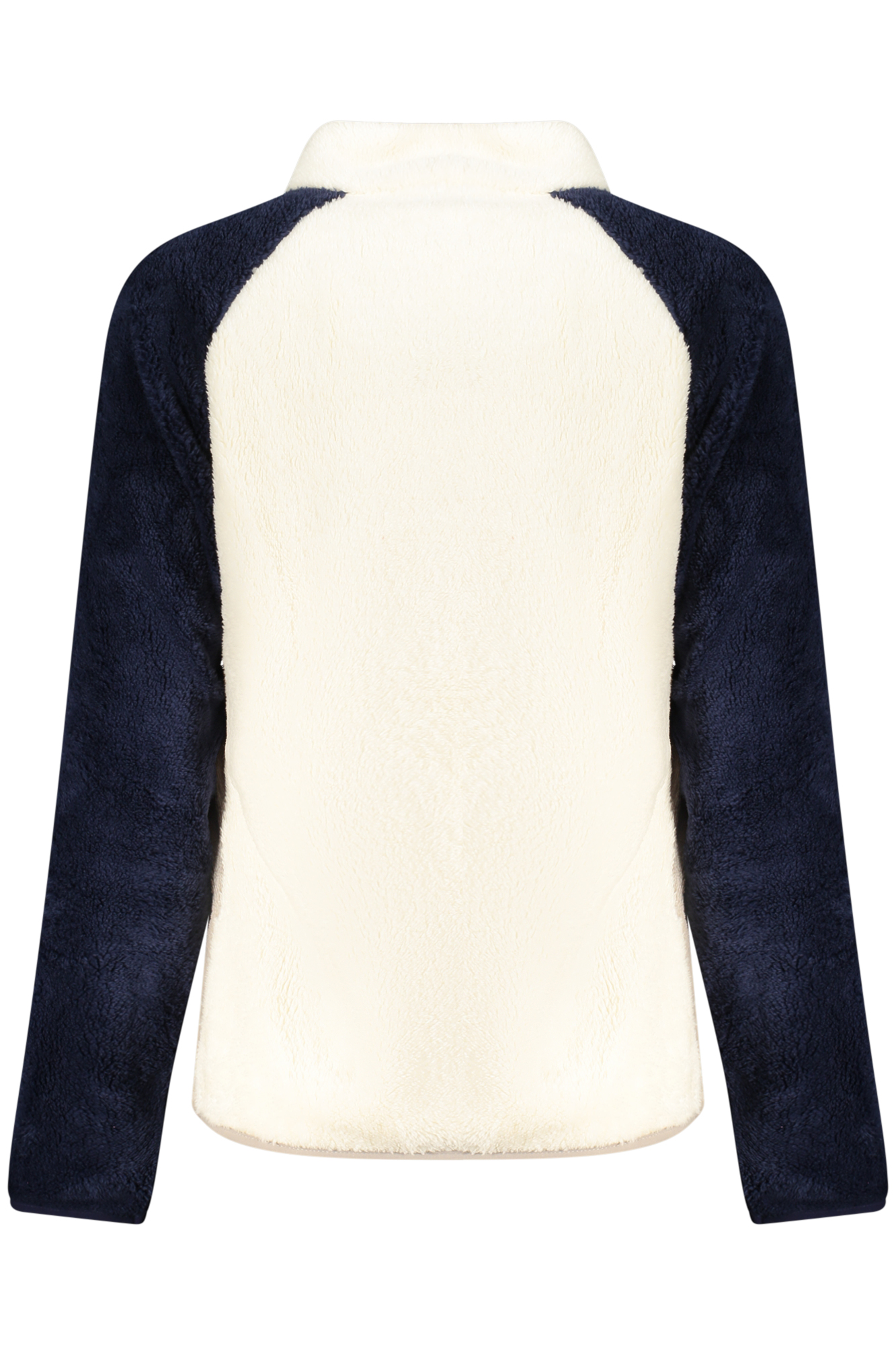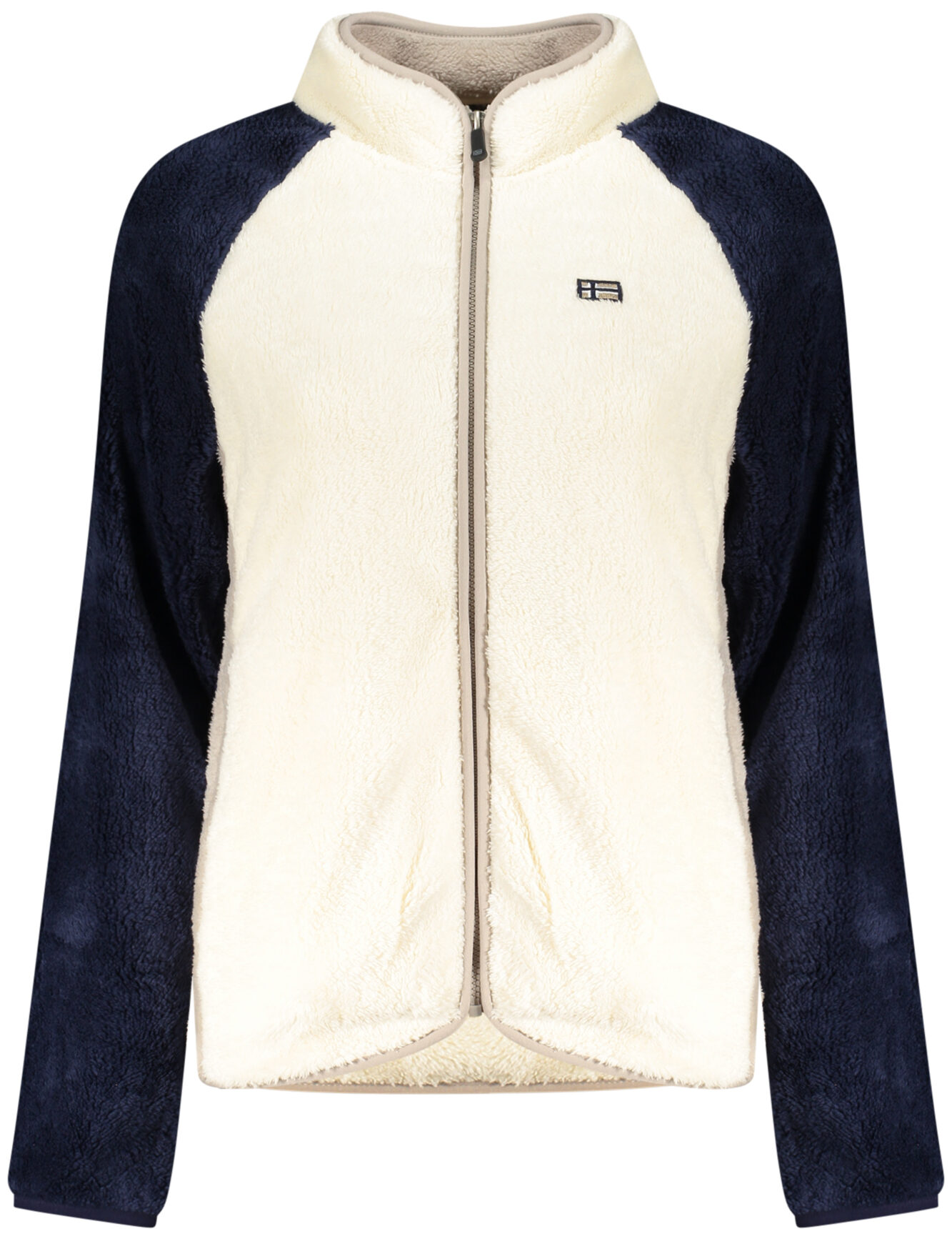 Casaco de manga comprida tipo camisola, com 2 bolsos exteriores, detalhes em contraste, fecho de correr frontal, bordado decorativo e logótipo da marca.