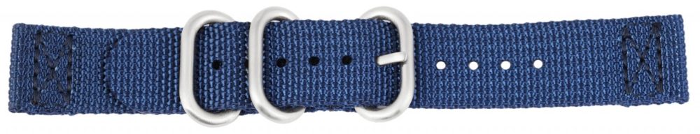 A pulseira de nylon azul escuro está disponível em larguras de 20 mm e 22 mm. Ele pode ser facilmente fixado à caixa do relógio usando duas barras de mola padrão. A pulseira do relógio tem um comprimento total de 21,5 cm. A pulseira pode ser aberta e fechada com uma fivela prateada. Além disso, duas presilhas de metal prateado estão firmemente costuradas na pulseira. O material macio torna a pulseira do relógio particularmente confortável de usar. A aparência simples permite que a pulseira de reposição seja fixada em qualquer tipo de relógio. Combina bem com a aparência geral dos relógios.