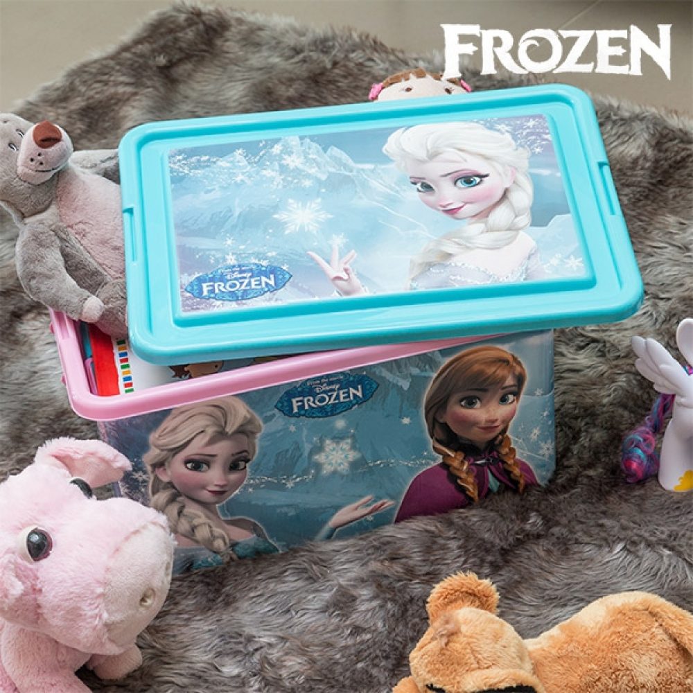 Trata-se de um fantástico organizador de brinquedos com ilustrações do filme Frozen.